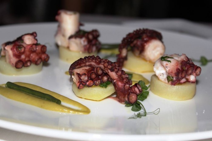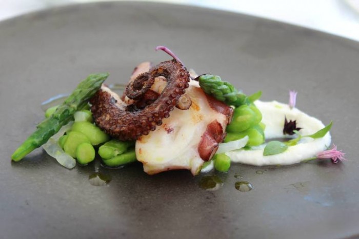 - Relais Blu, fragole, polpo arrostito con crema di ricotta e verdure