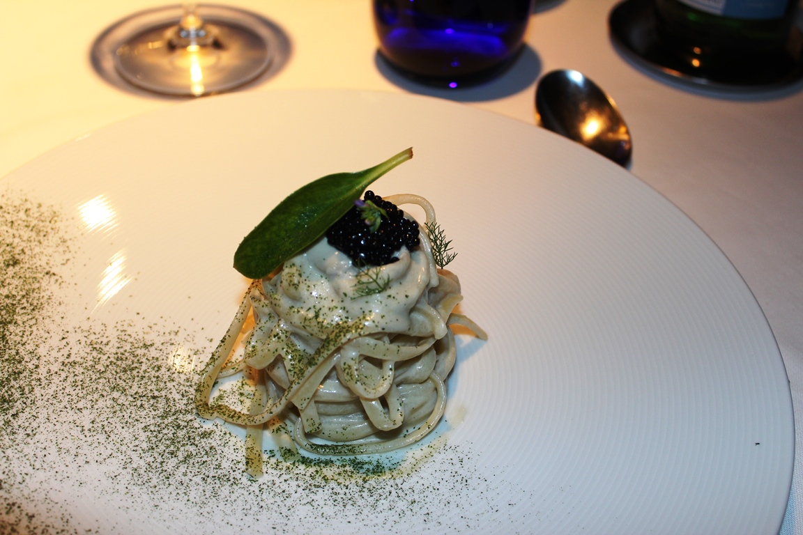 - Linguine alle ostriche, fiore di finocchietto selvatico e caviale