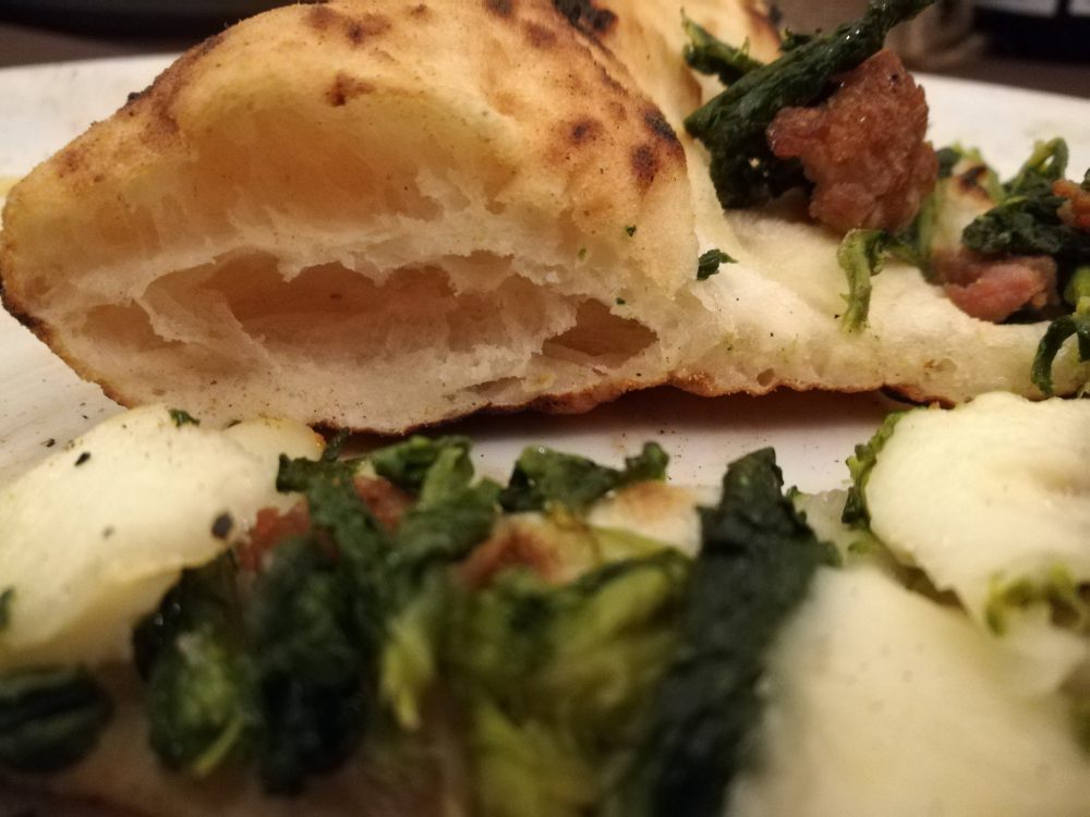 Avendo a che fare con tanta aria immagazzinata nei cornicioni è inevitabile che ci sia in superficie qualche segno di bruciacchiatura, un fattore che diventa totalmente ininfluente quando si viene ammaliati prima dal profumo e poi dal sapore assecondato dal leggerissimo impasto che, cosi come deve rigorosamente essere per un “canotto”, forma tante caverne o nuvole che si voglia dire, e soprattutto, data l’alta idratazione, assecondato dalla perfetta cottura interna che non fa trovare parti di mollica cruda ma solo tanta sofficità e scioglievolezza.