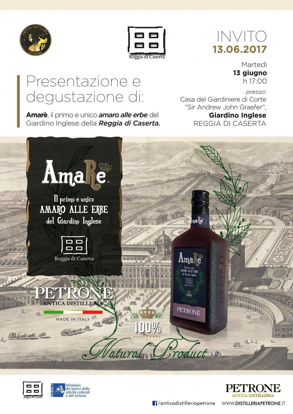 Canfora, citronella, arancia amara, camelia, cicoria, finocchietto, bacche di mirto, ulivo, bergamotto e limoni, tutti provenienti dal settecentesco “Real Giardino Inglese” della Reggia di Caserta nato nel 1786 per volere di Maria Carolina d’Austria, moglie di Ferdinando IV di Borbone. Sono queste le erbe e le essenze dalla cui infusione l’azienda liquoristica casertana Antica Distilleria Petrone ottiene l’esclusivo AmaRè, il primo e unico “amaro della Reggia”.