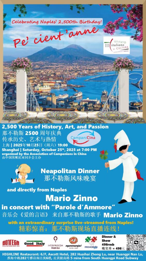 25 ottobre 2025, A Shangai, Buon Compleanno Napoli. 2500 anni di storia, arte e passione. “Pe’ Cient’Anne”