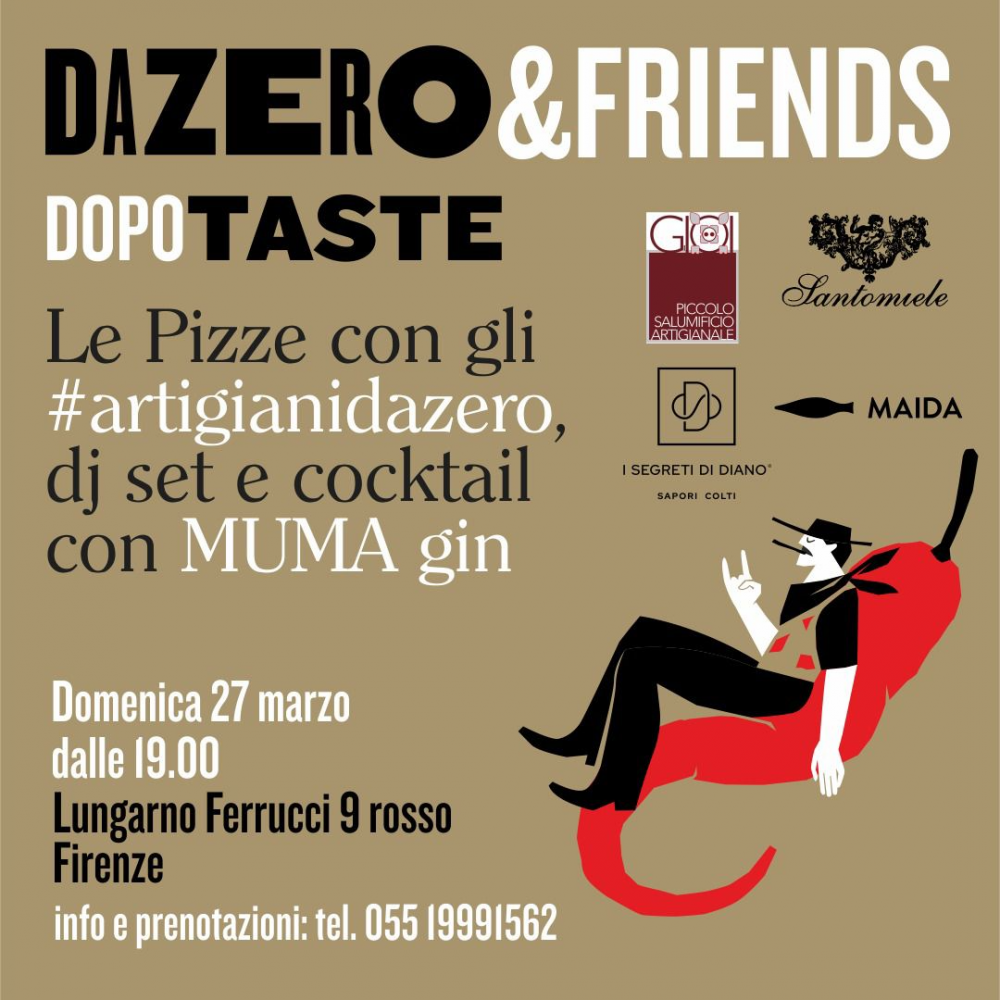 Domenica 27 marzo a partire dalle 19:00, DaZero organizza nella sua sede di Firenze, in via Lungarno Ferrucci 9, un nuovo appuntamento di DaZero&Friends in occasione del TASTE, la manifestazione delle eccellenze Italiane che si terrà alla Leopolda. Nel prestigioso evento fieristico a rappresentare l’area del Parco Nazionale del Cilento, Vallo di Diano e Alburni ci saranno quattro partner di DaZero: Maida, il Piccolo Salumificio Artigianale di G.Ioi, I Segreti di Diano e Santomiele. Gli artigiani saranno i protagonisti della serata “dopoTASTE” con una formula originale proposta per l’occasione in cui alle pietanze di DaZero si aggiungerà una scelta di cocktail con MUMA gin. Altro elemento originale che contribuirà all’atmosfera di festa dell’appuntamento di domenica sera sarà il DJ set organizzato per l’occasione. L’evento vuole infatti essere un momento per celebrare lo speciale connubio di DaZero con i suoi artigiani ed offrire ai clienti di Firenze l’occasione anche di conoscere direttamente le persone che creano le eccellenze che il brand cilentano propone sulle sue pizze e non solo.