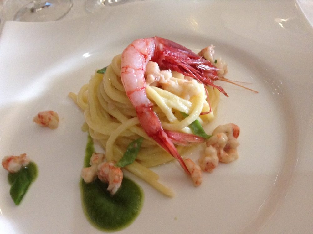 24 La Cantinella, Villammare, troccolo lucano con taccole e gamberi rossi, posizione ventiquattro per il piatto di Lorenza (e Mario) Riccardi