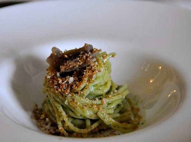 20 Miramonti l’Altro, Costorio di Concesio, spaghetti al nero, posizione numero venti per questo primo piatto da pausa pranzo infrasettimanale e bistellata