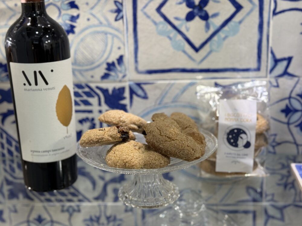 “I biscotti di Nonna Dora, ad esempio, sono un dolce tradizionale della cucina campana, in particolare della zona di Gesualdo, un piccolo paese in provincia di Avellino. Questi biscotti, senza latte né uova sono fragranti e dal sapore delicato, grazie all’uso del vino aglianico di Cantina Marianna Venuti, che ne esalta la bontà. La ricetta è un omaggio alla tradizione e alla semplicità della cucina contadina, ed è anche un bel modo per ricordare le nonne, che preparavano questi dolci con amore e dedizione.”