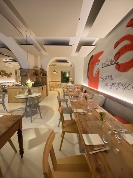 Coraggio. Sentiva il bisogno Denis di portare il suo stile di pizza fuori dalle valli bellunesi e sceglie il centro di Milano con un locale curassimo, rifinito con legni e pietre di montagna, con un design coerente con l’offerta. Un passo importante che la città sta premiando con grande affetto e scopriamo i milanesi amare da subito questo stile di pizza, frutto di un grande lavoro sull’impasto e di una raffinata sensibilità negli abbinamenti.