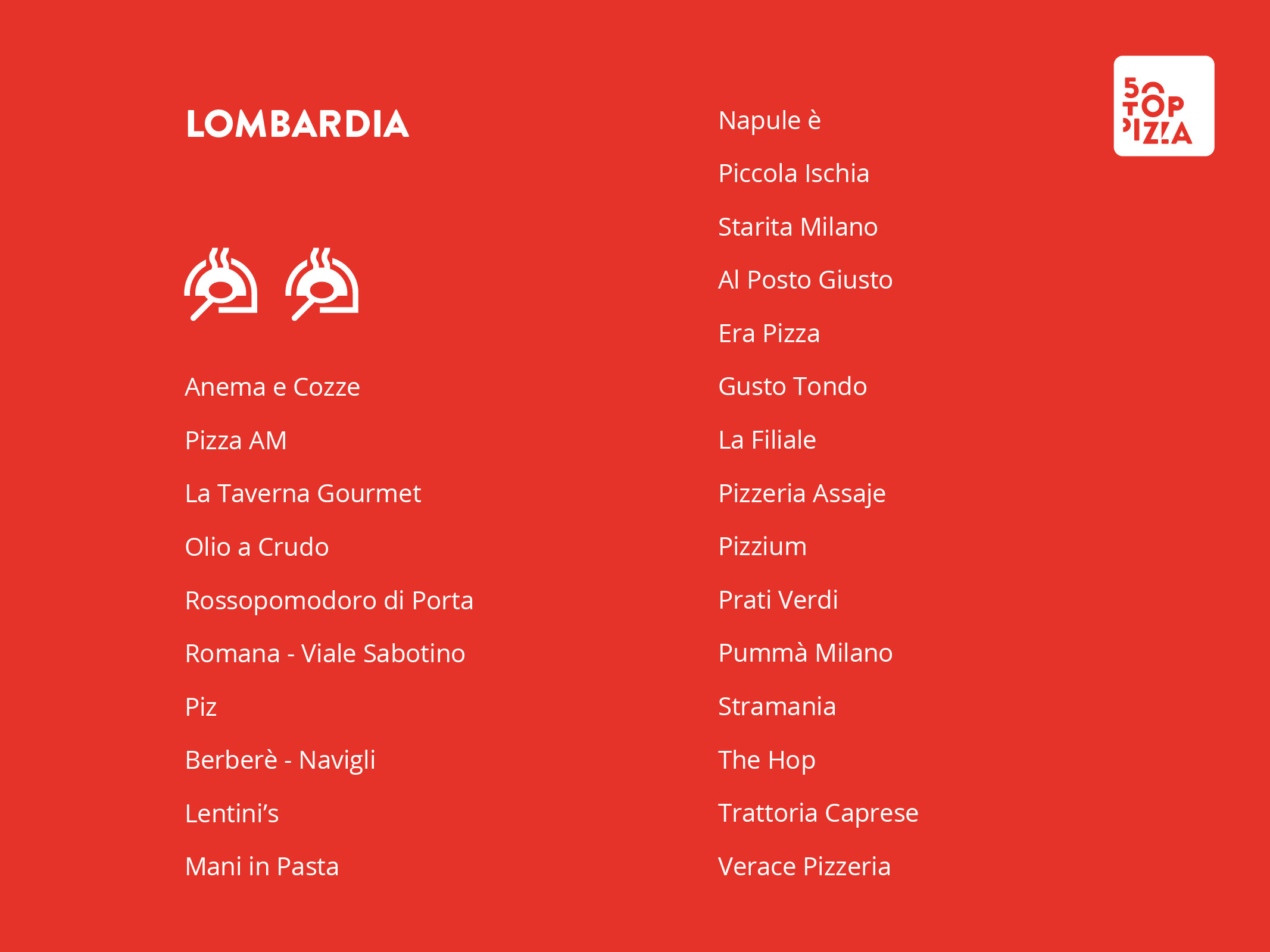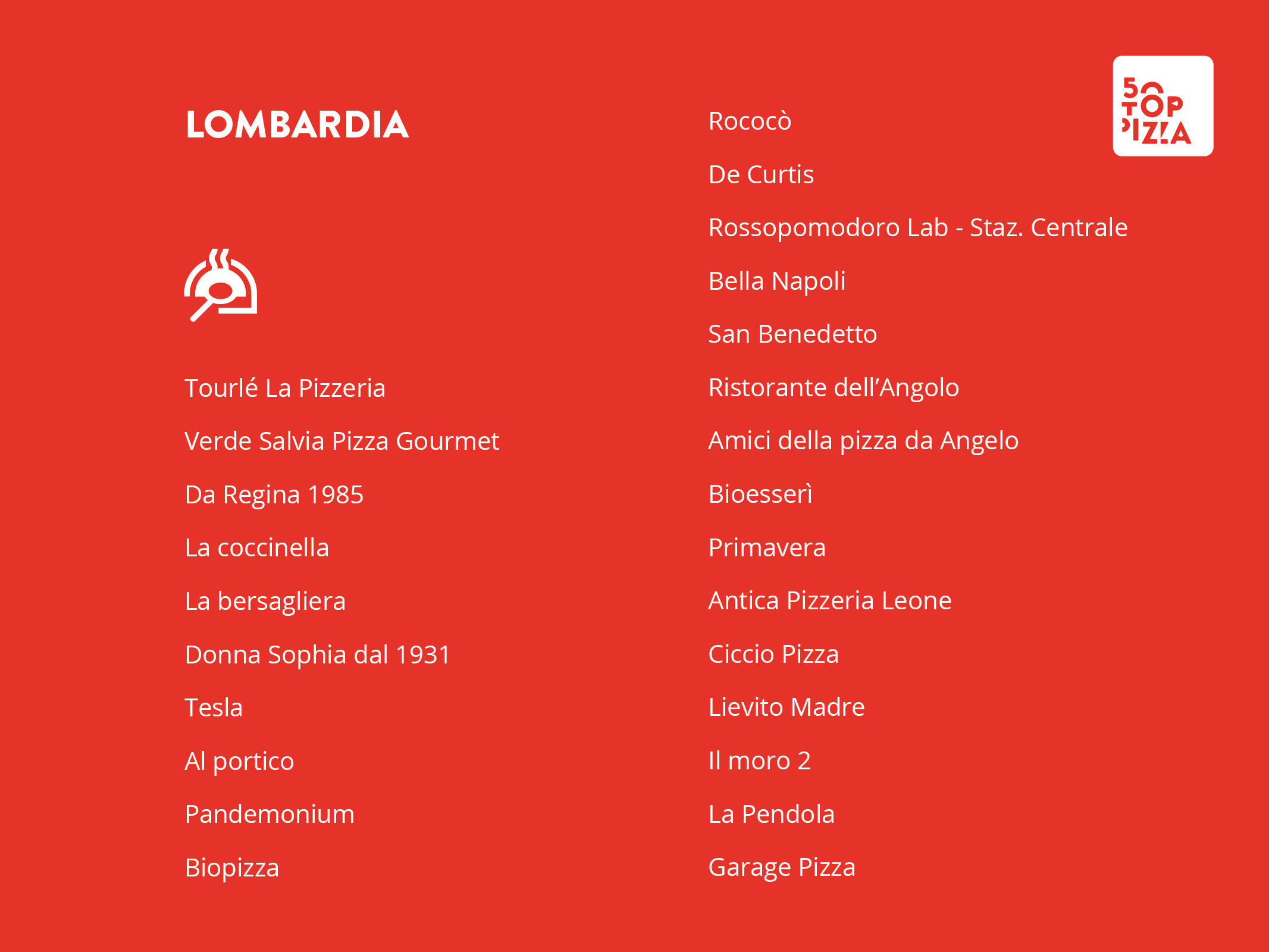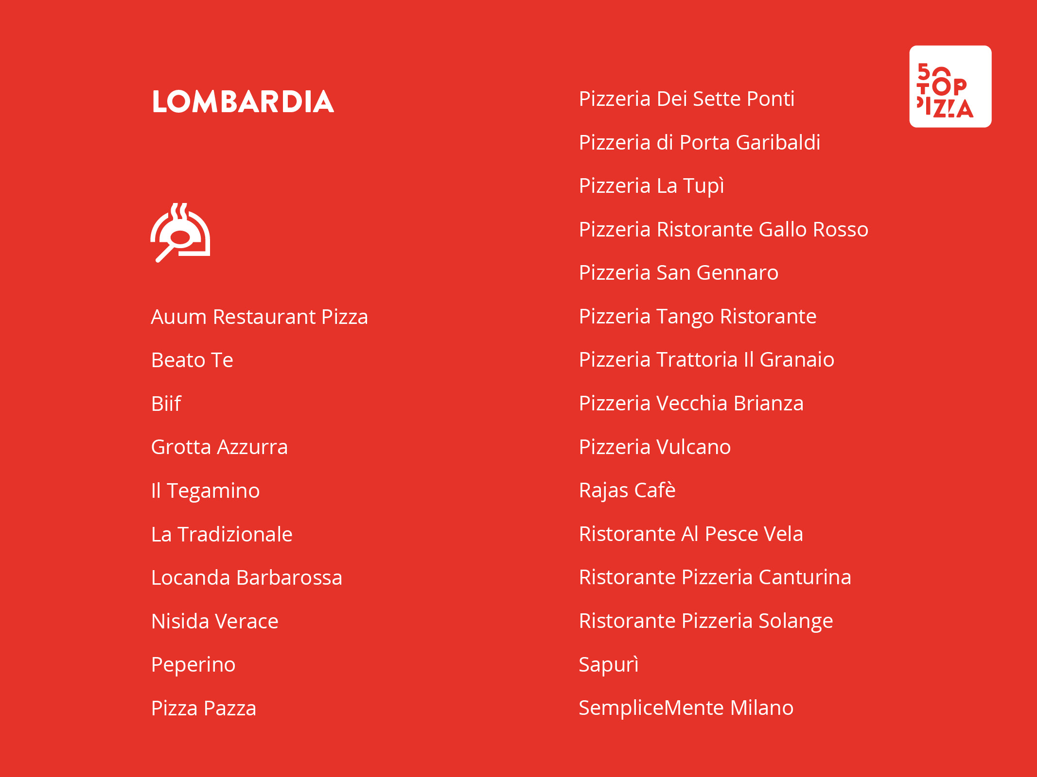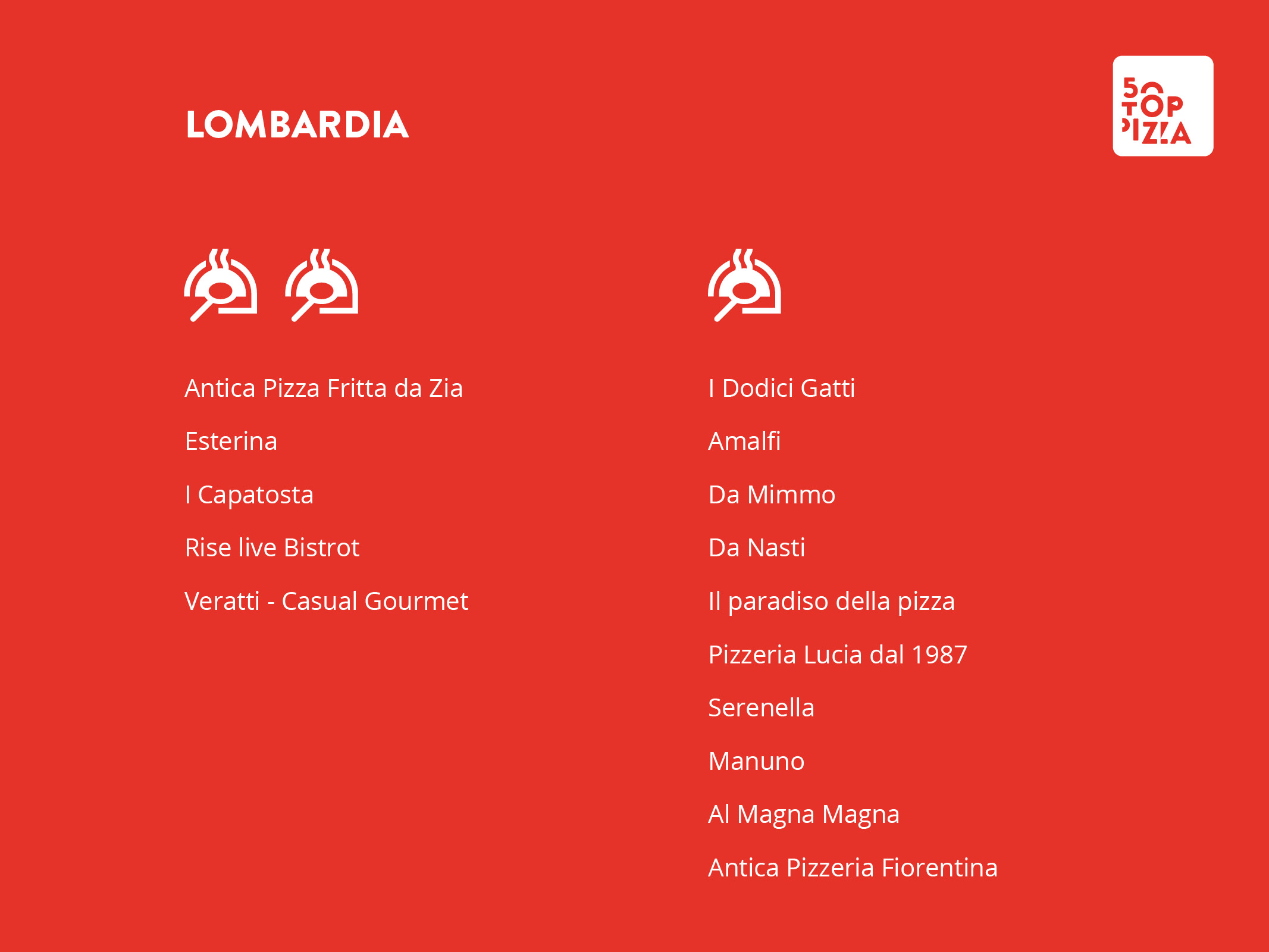 Lombardia: 28 pizzerie due forni; 64 pizzerie un forno; totale 92