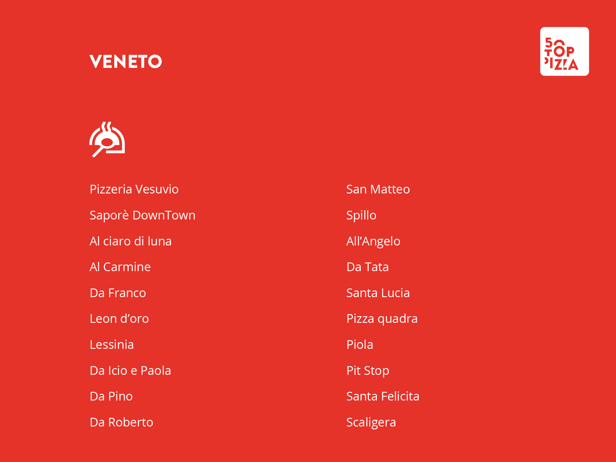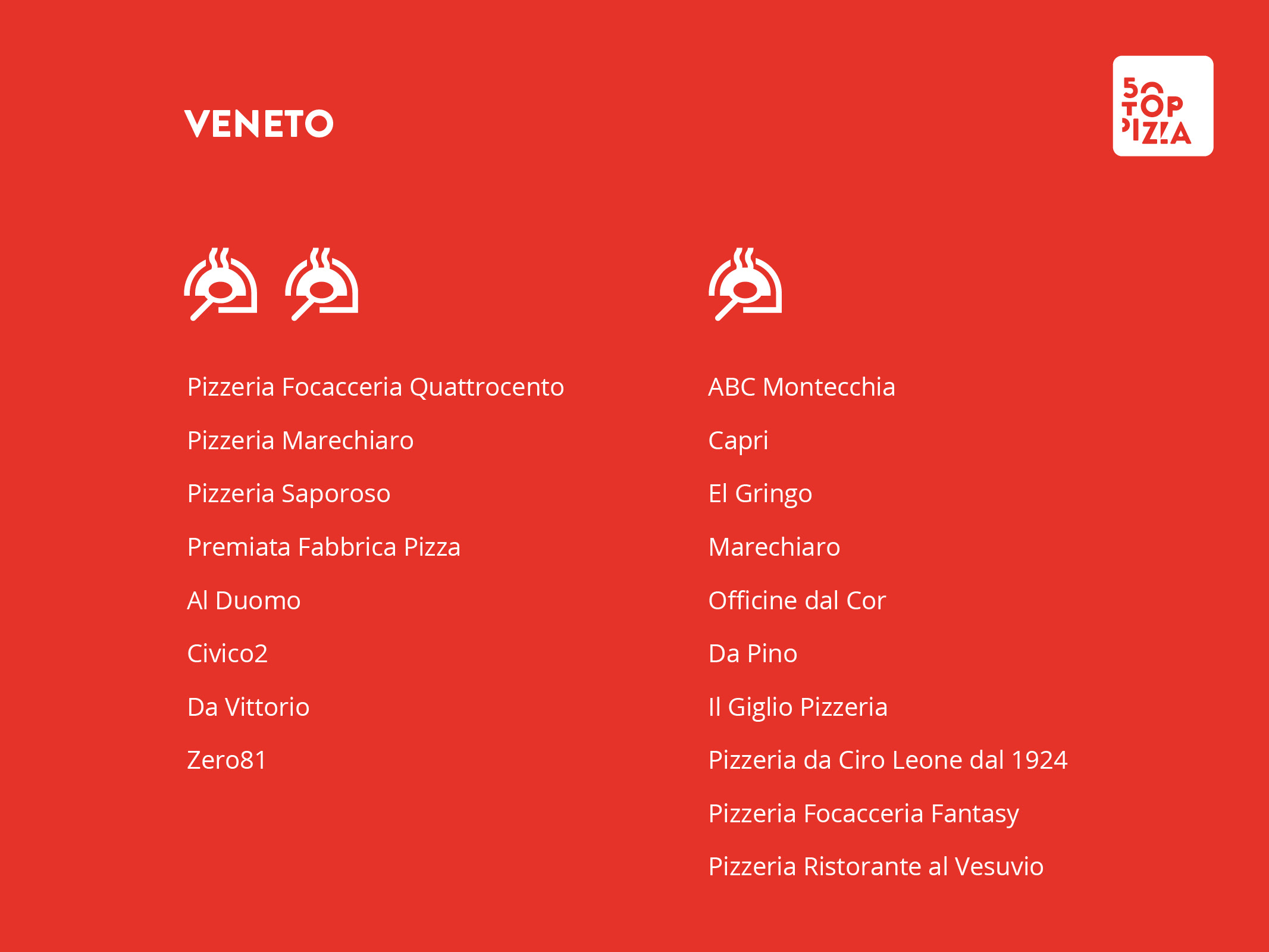 Veneto: 33 pizzerie due forni: 30 pizzerie un forno; totale 63