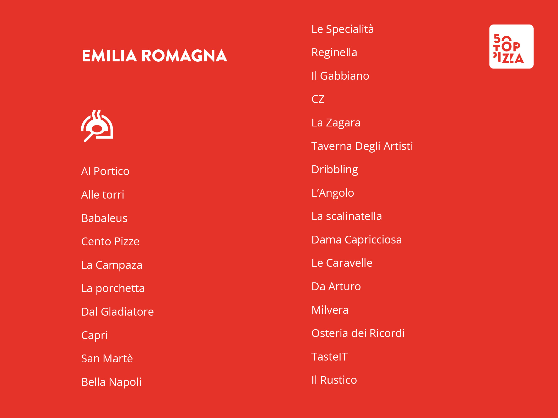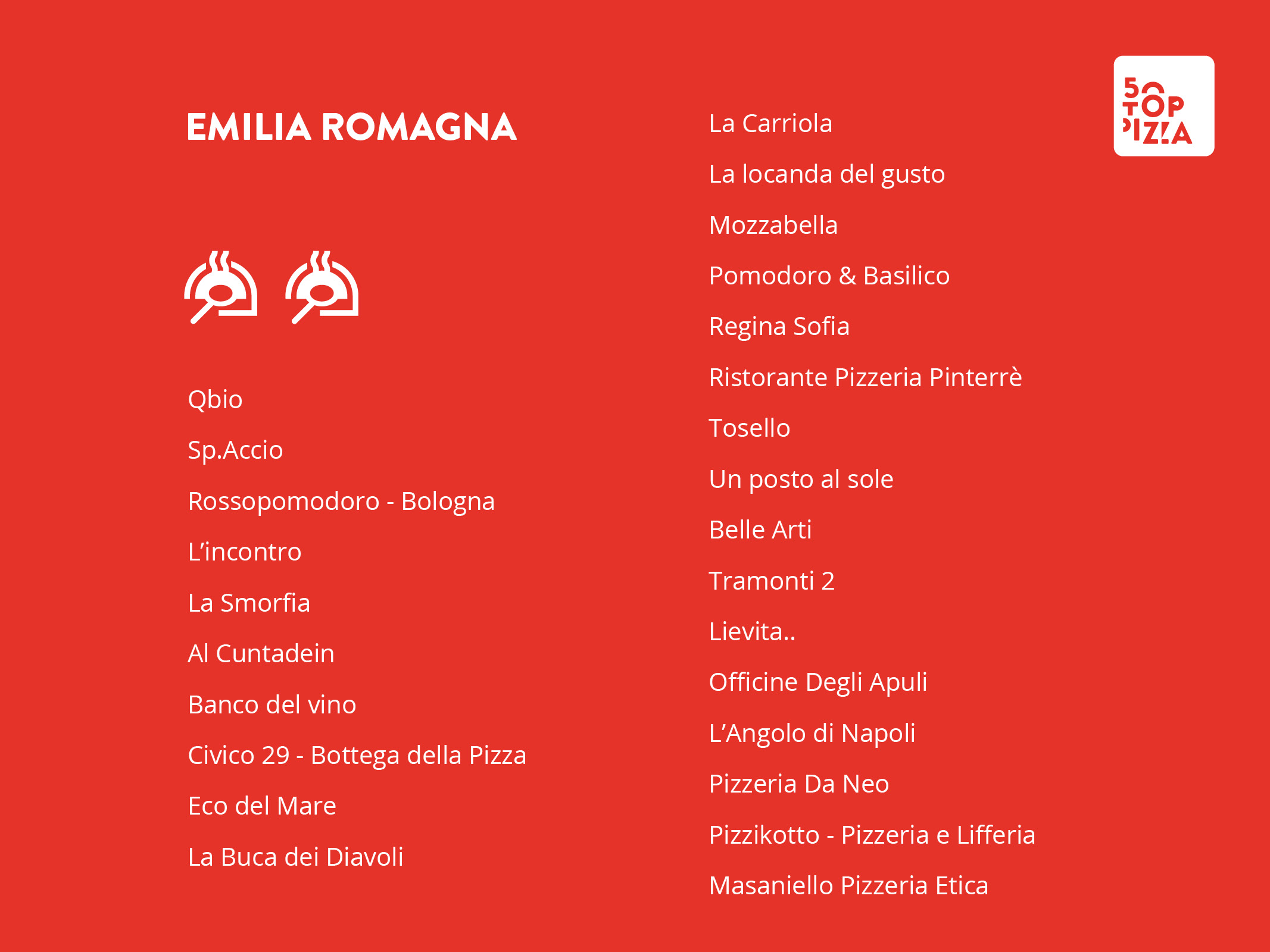 Emilia Romagna: 26 pizzerie due forni; 55 pizzerie un forno: totale 81