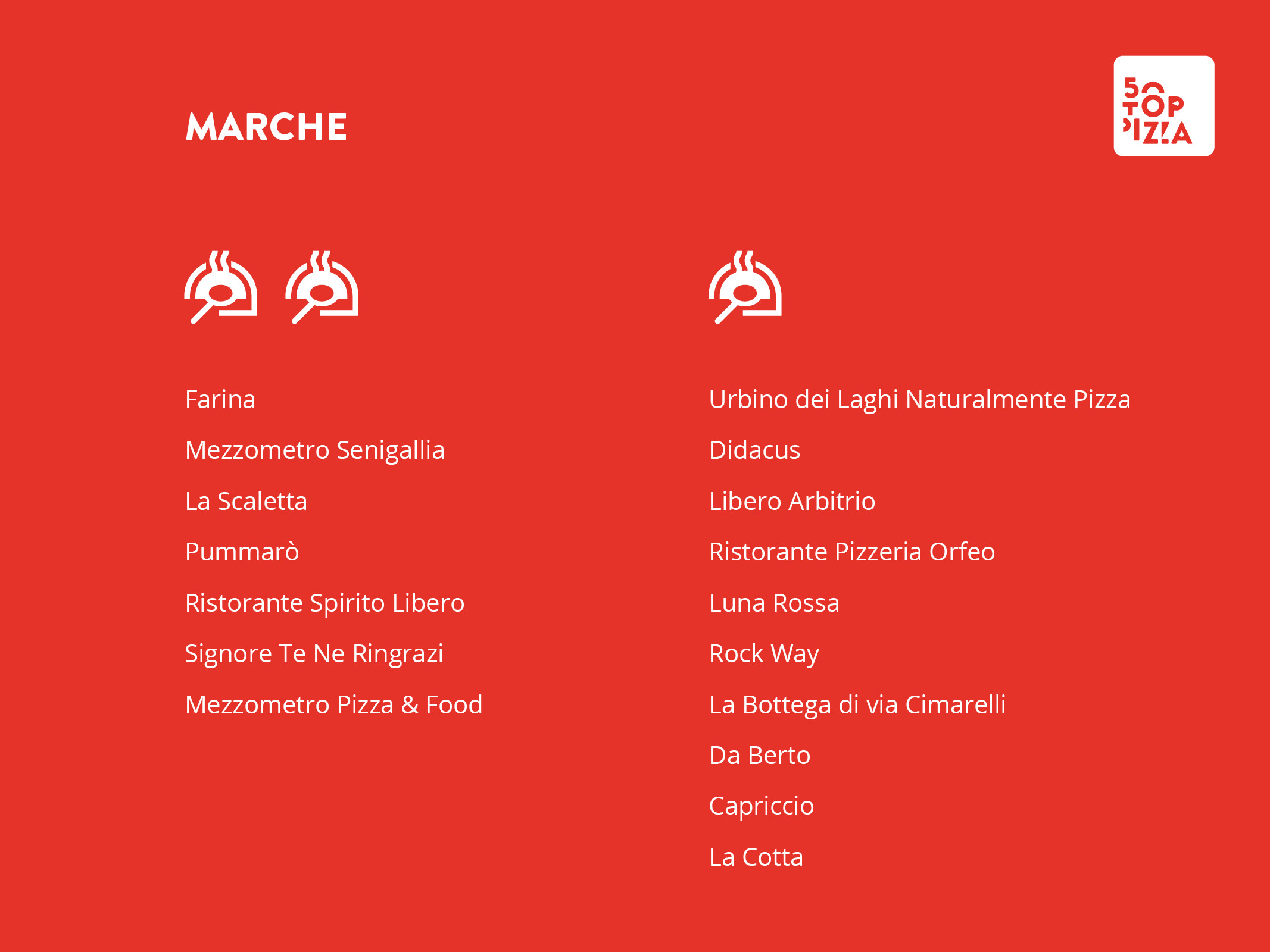 Marche: 7 pizzerie due forni; 30 pizzerie un forno; totale 37