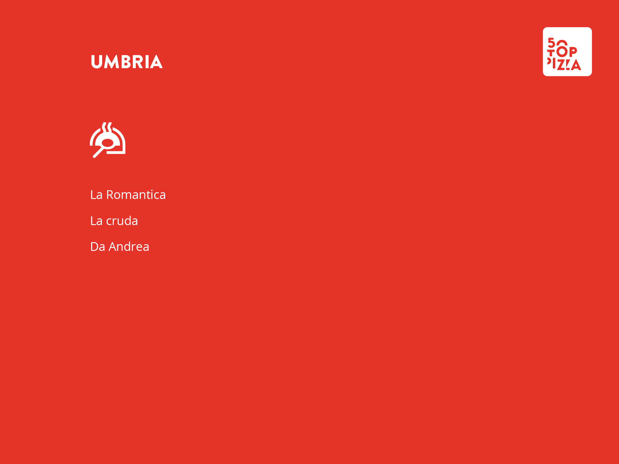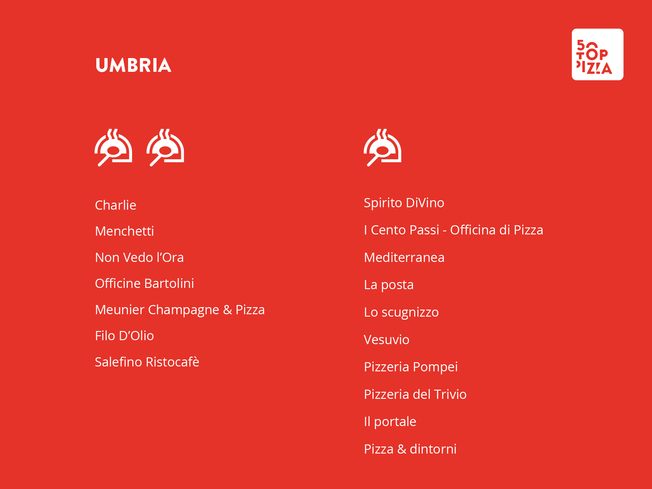 Umbria: 7 pizzerie due forni; 13 pizzerie un forno; totale 20