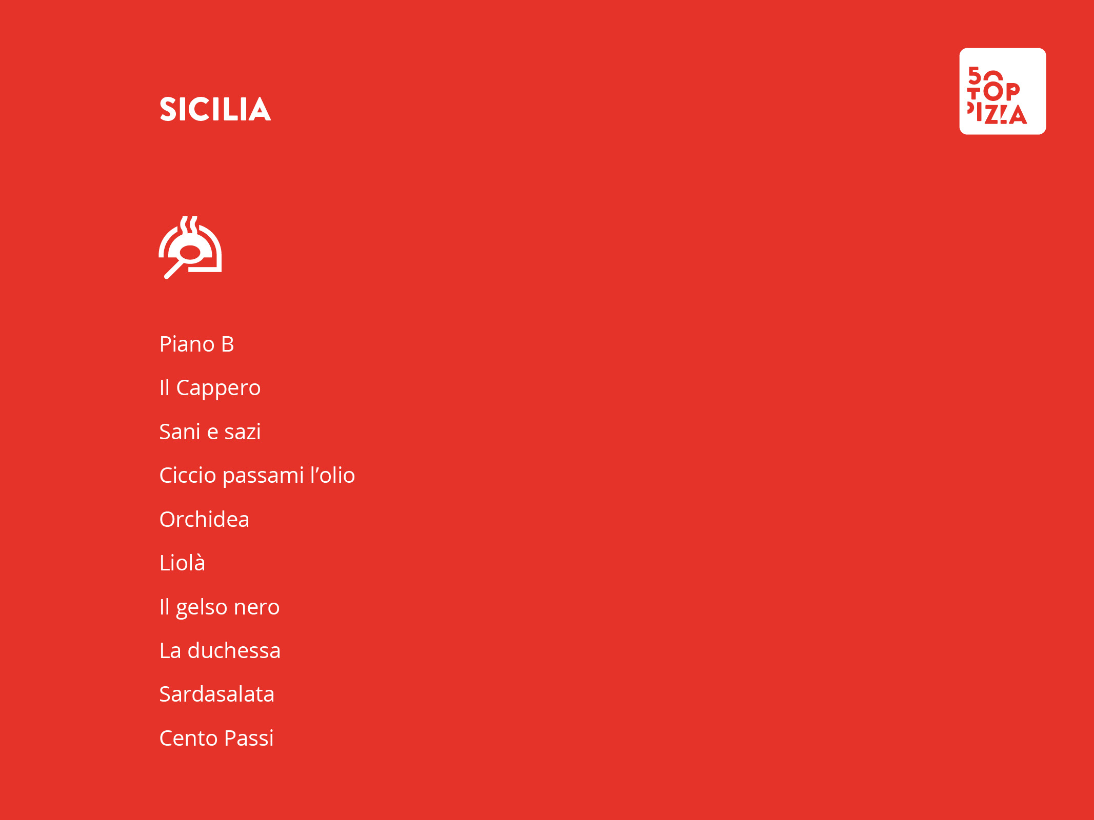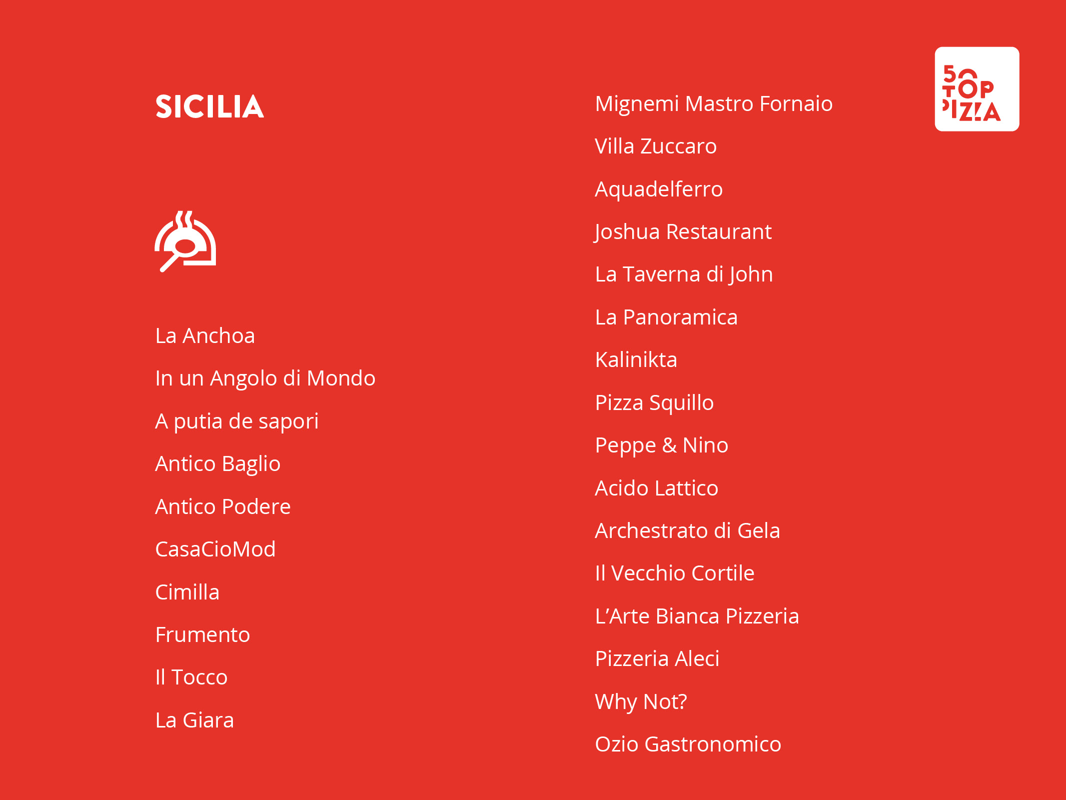 Sicilia: 21 pizzerie due forni; 36 un forno; totale 57