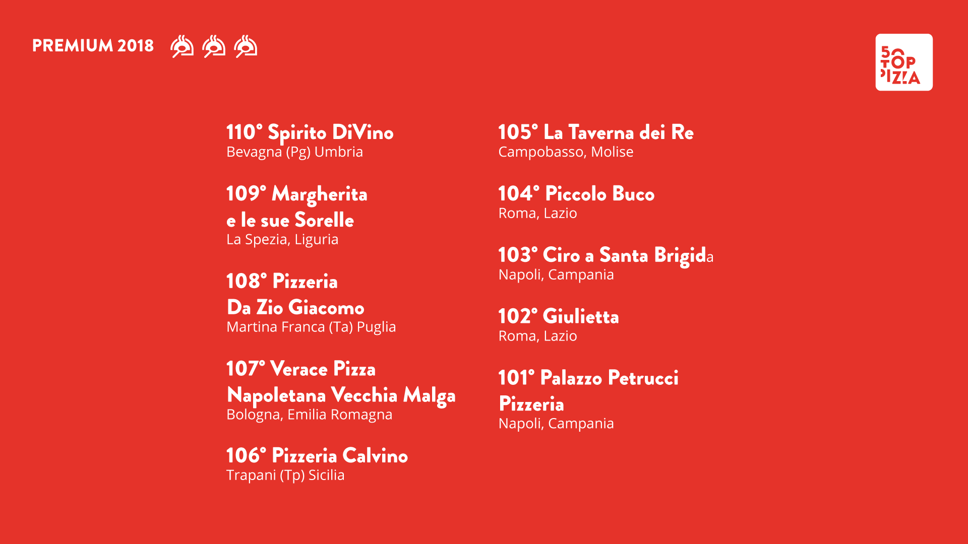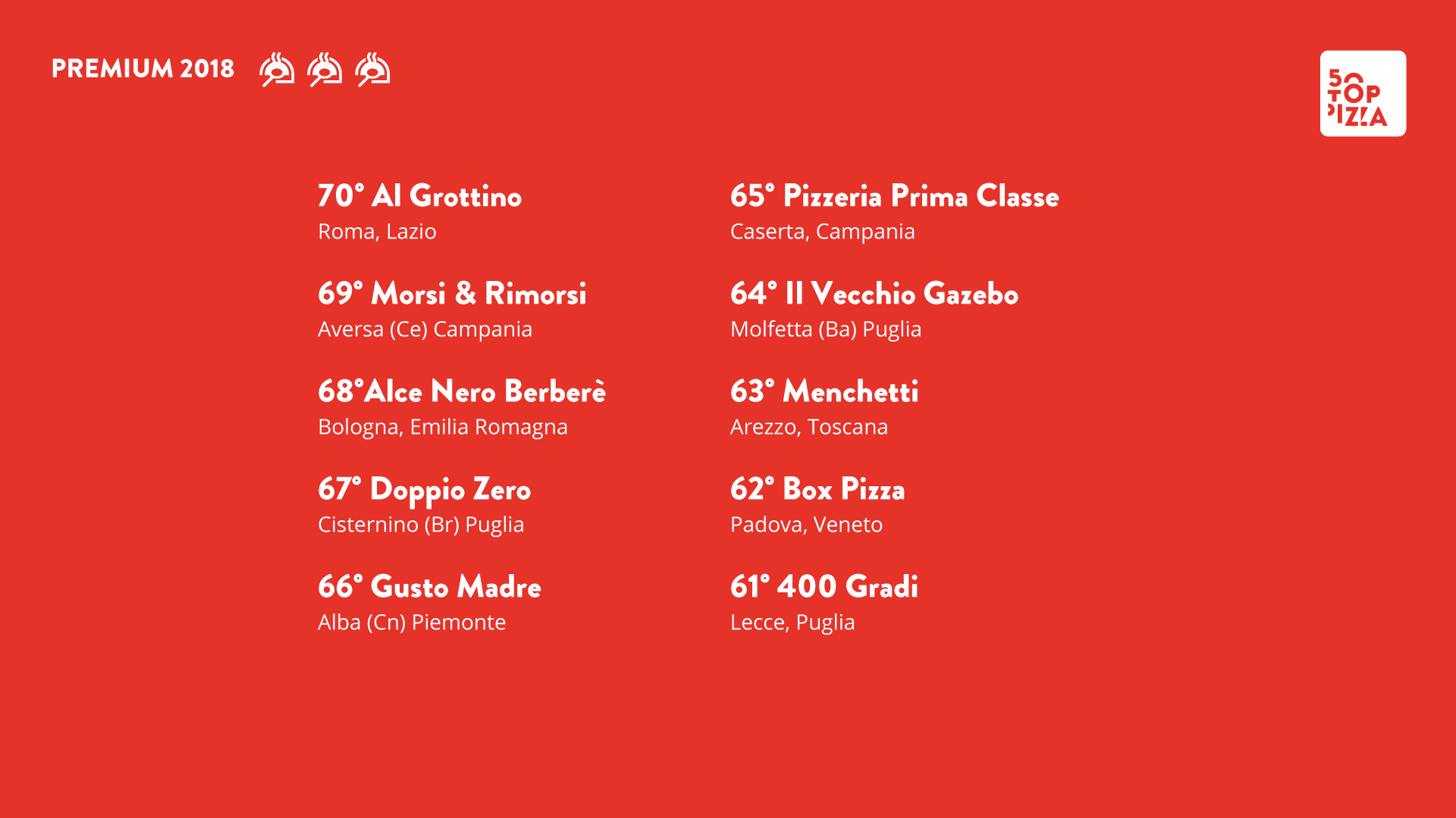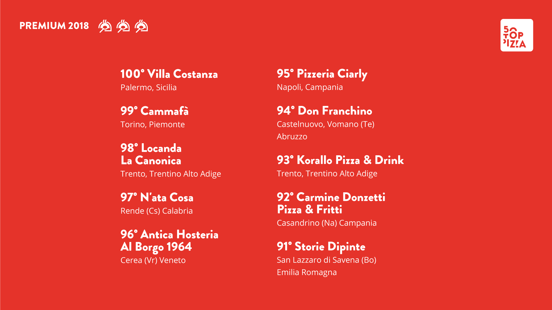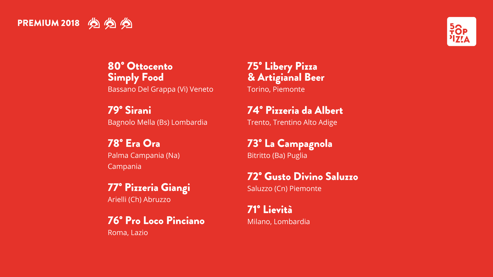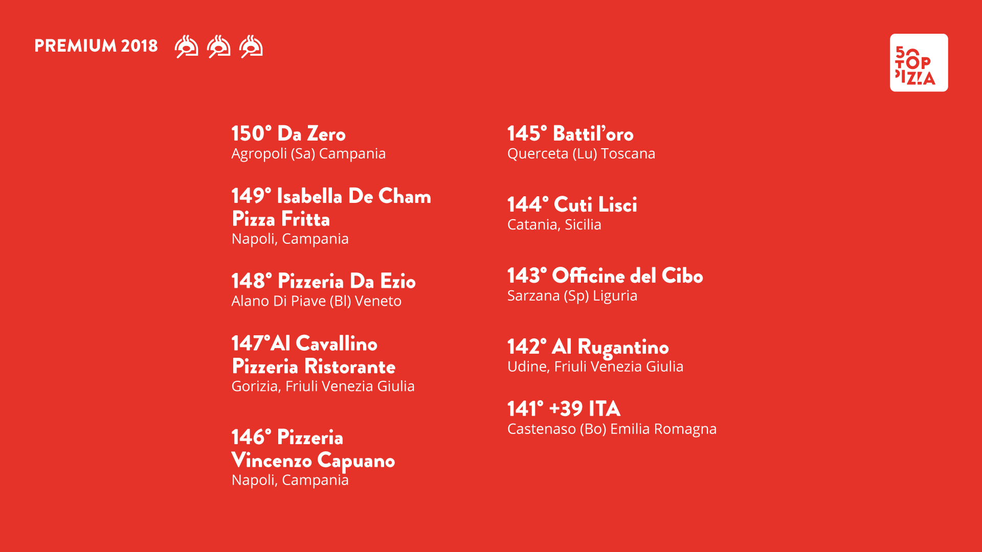Le posizioni dalla 150 alla 51 in 50 top pizza 2018