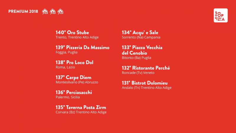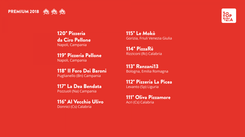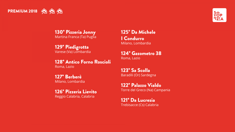 Le posizioni dalla 150 alla 51 in 50 top pizza 2018