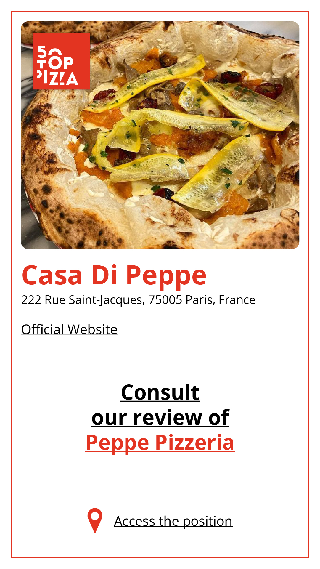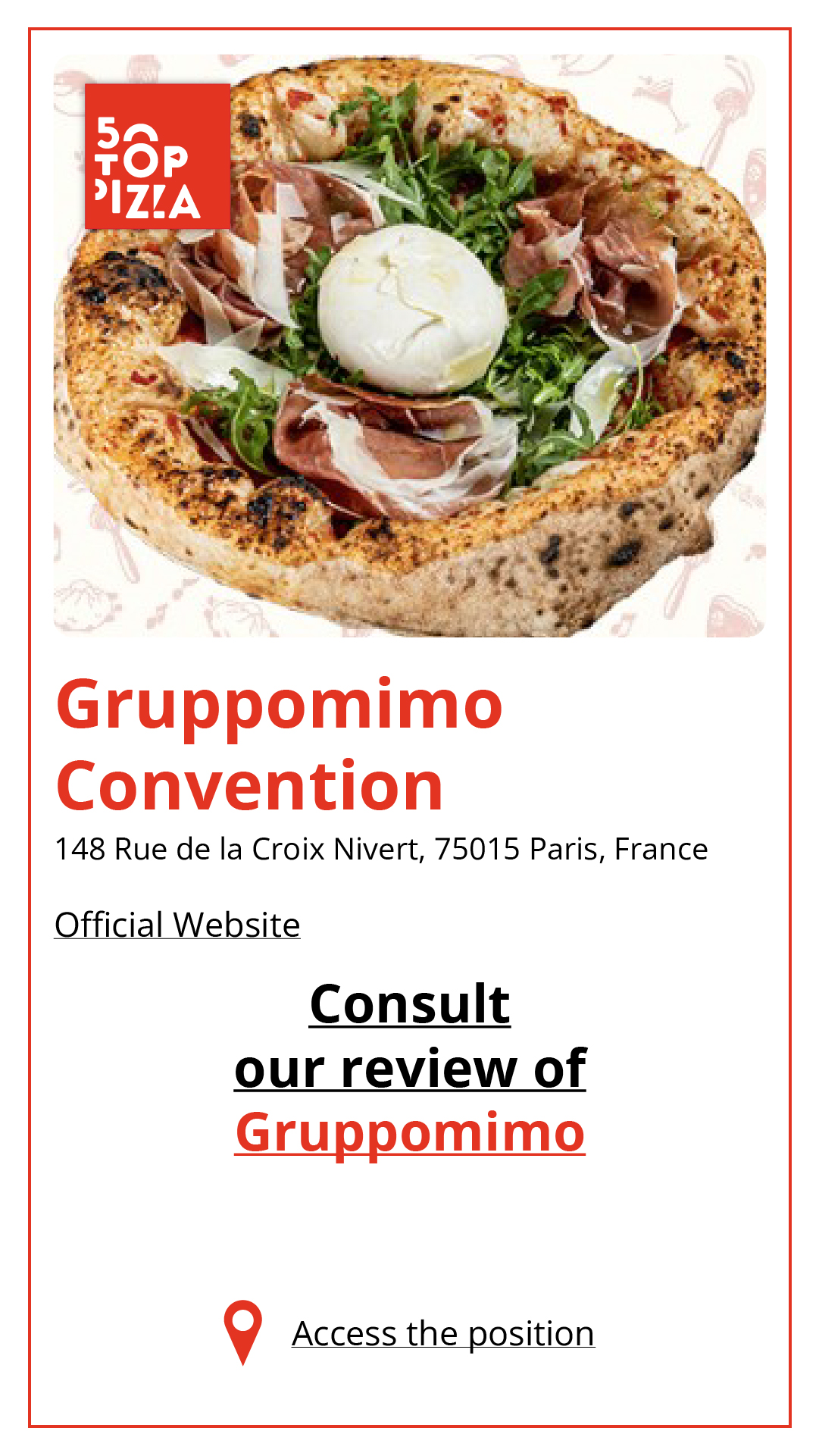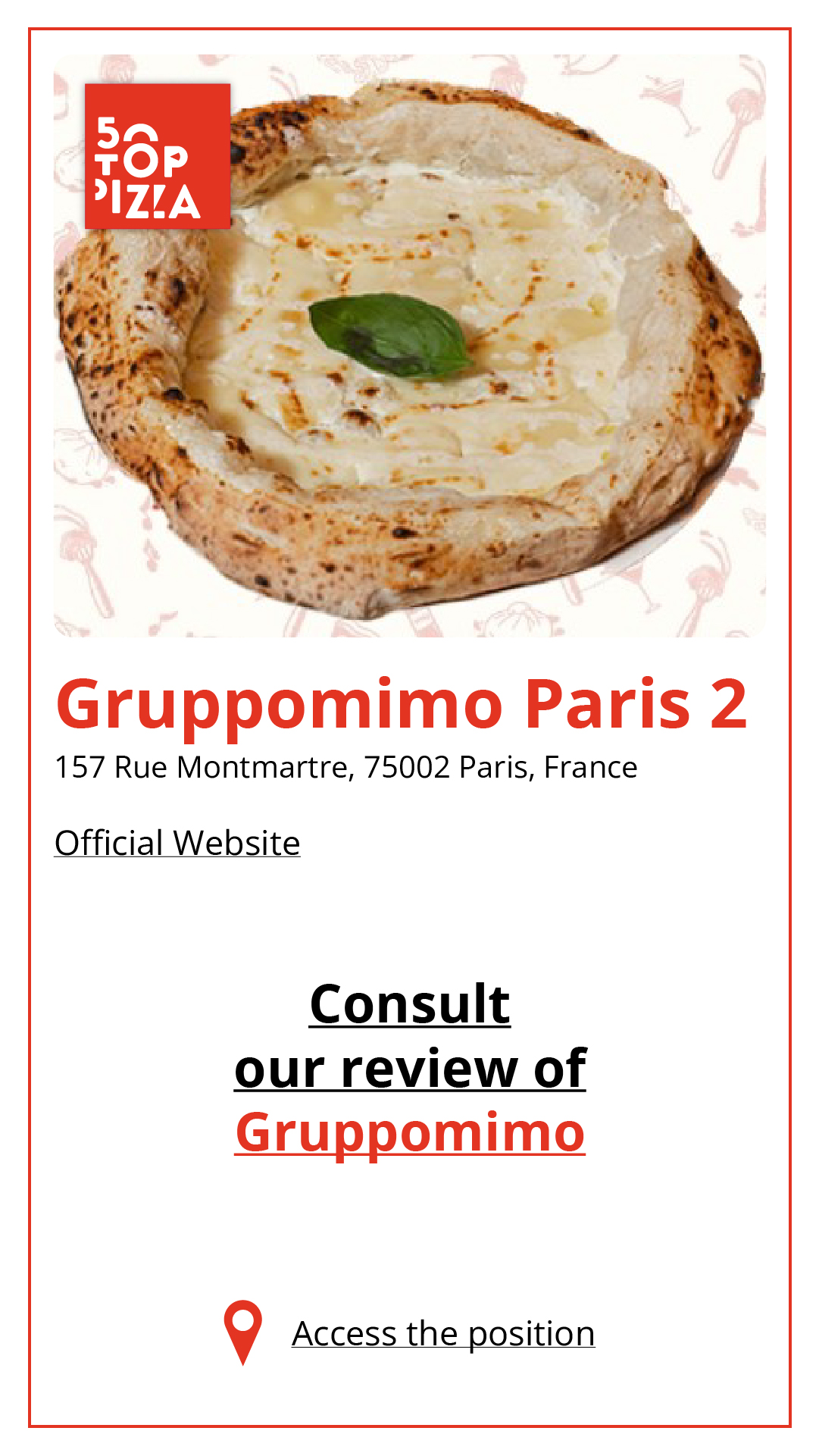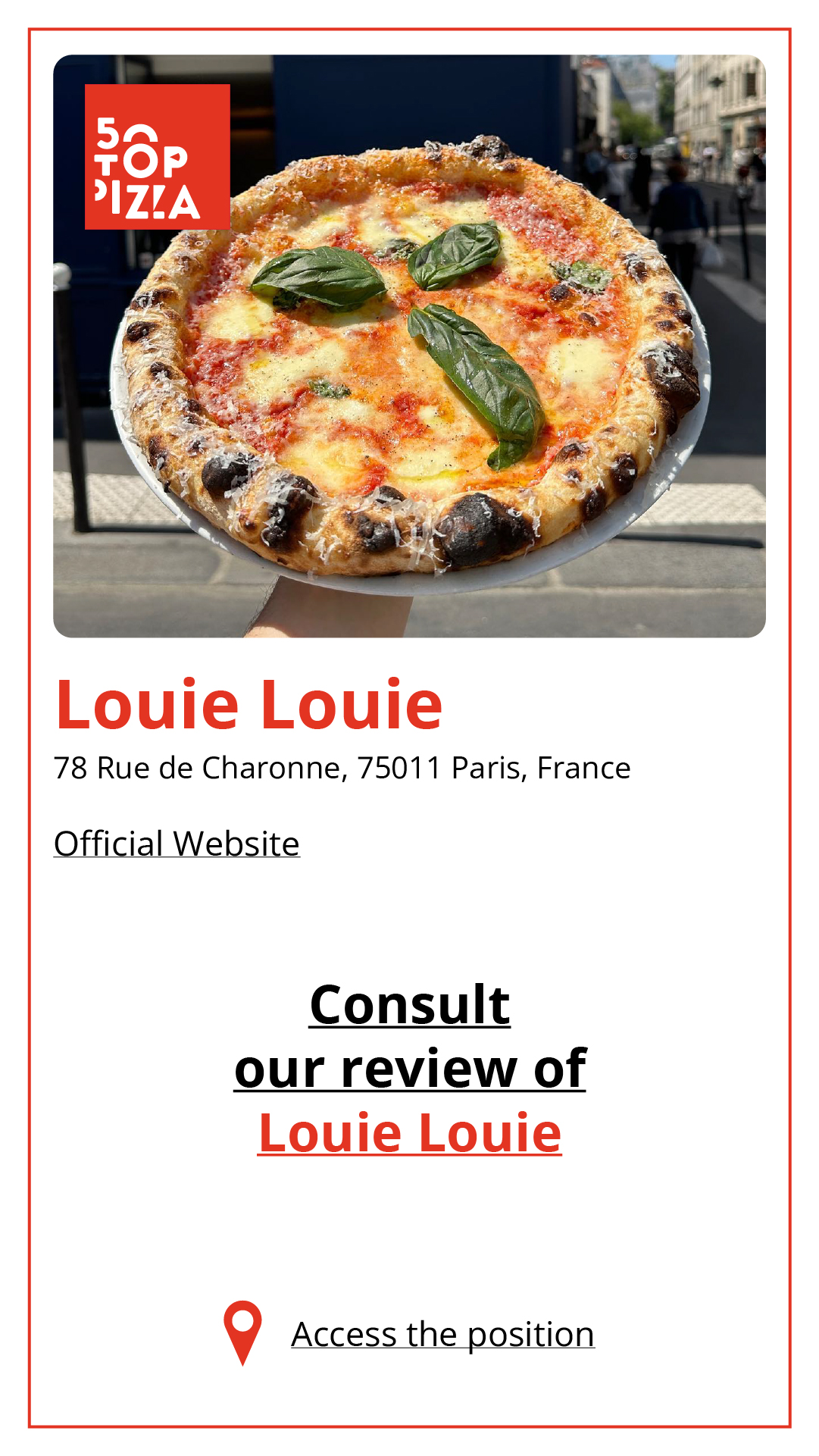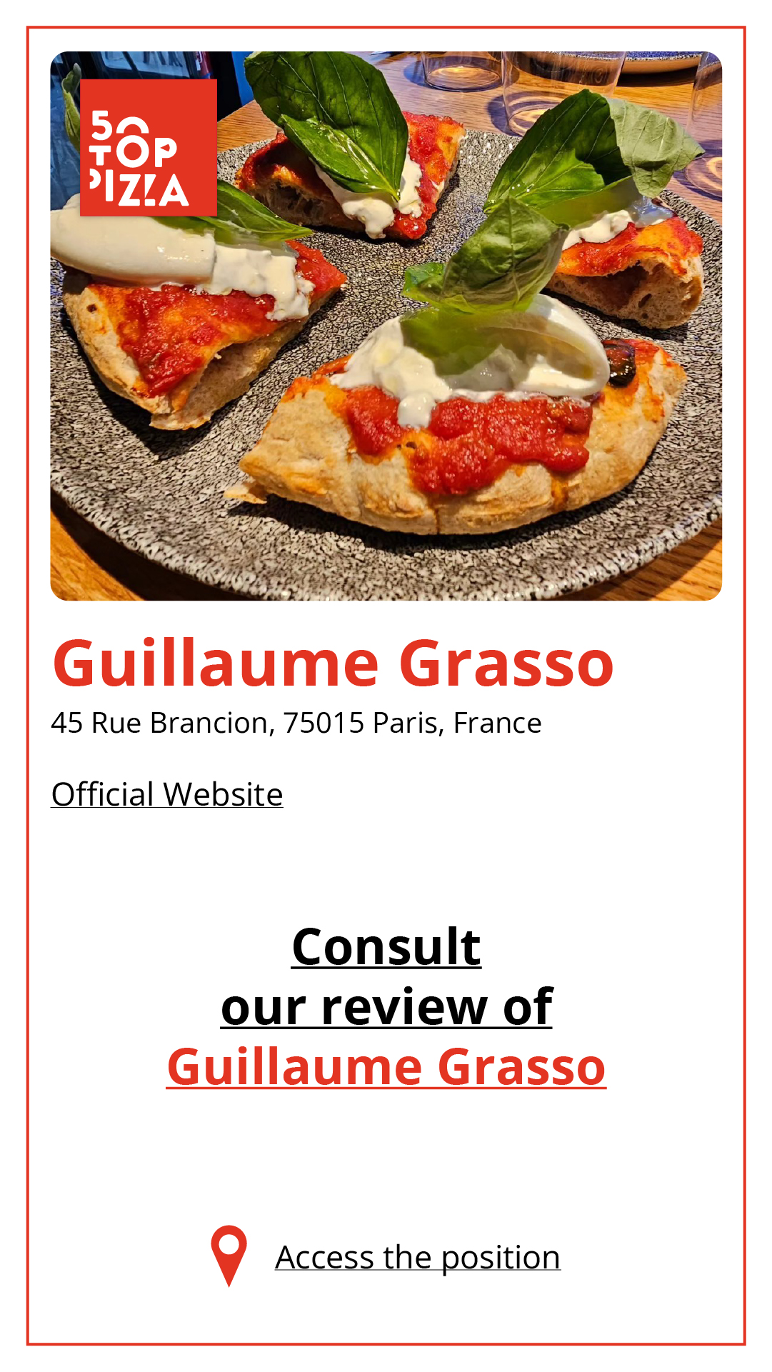 Consulta la Guida alle Migliori Pizzerie di Parigi 2024: https://www.50toppizza.it/the-best-pizzerias-in-paris-2024/