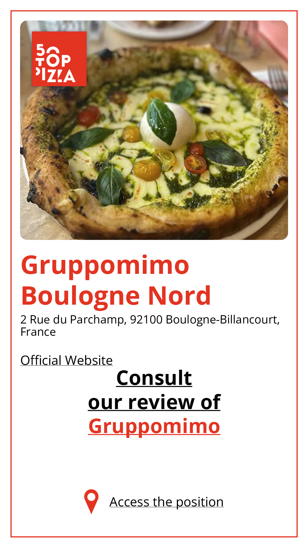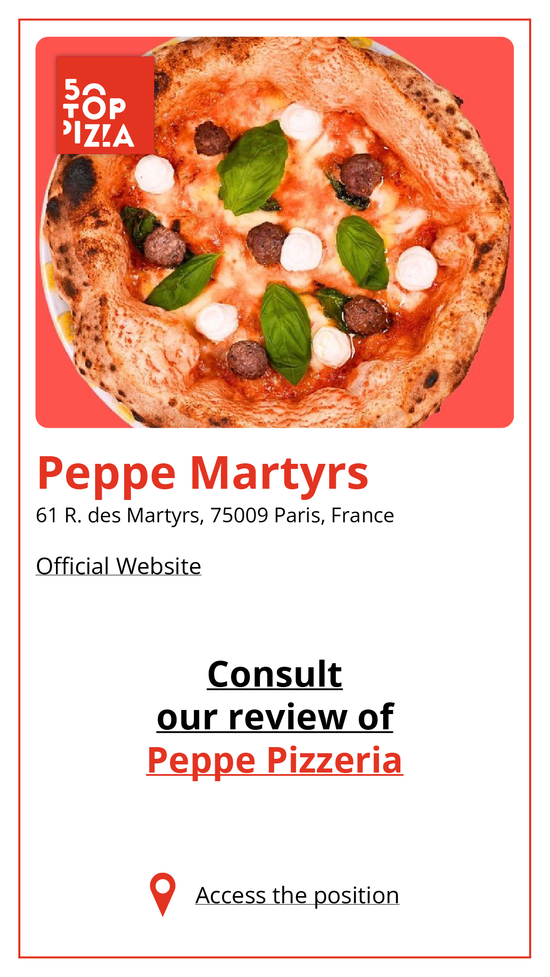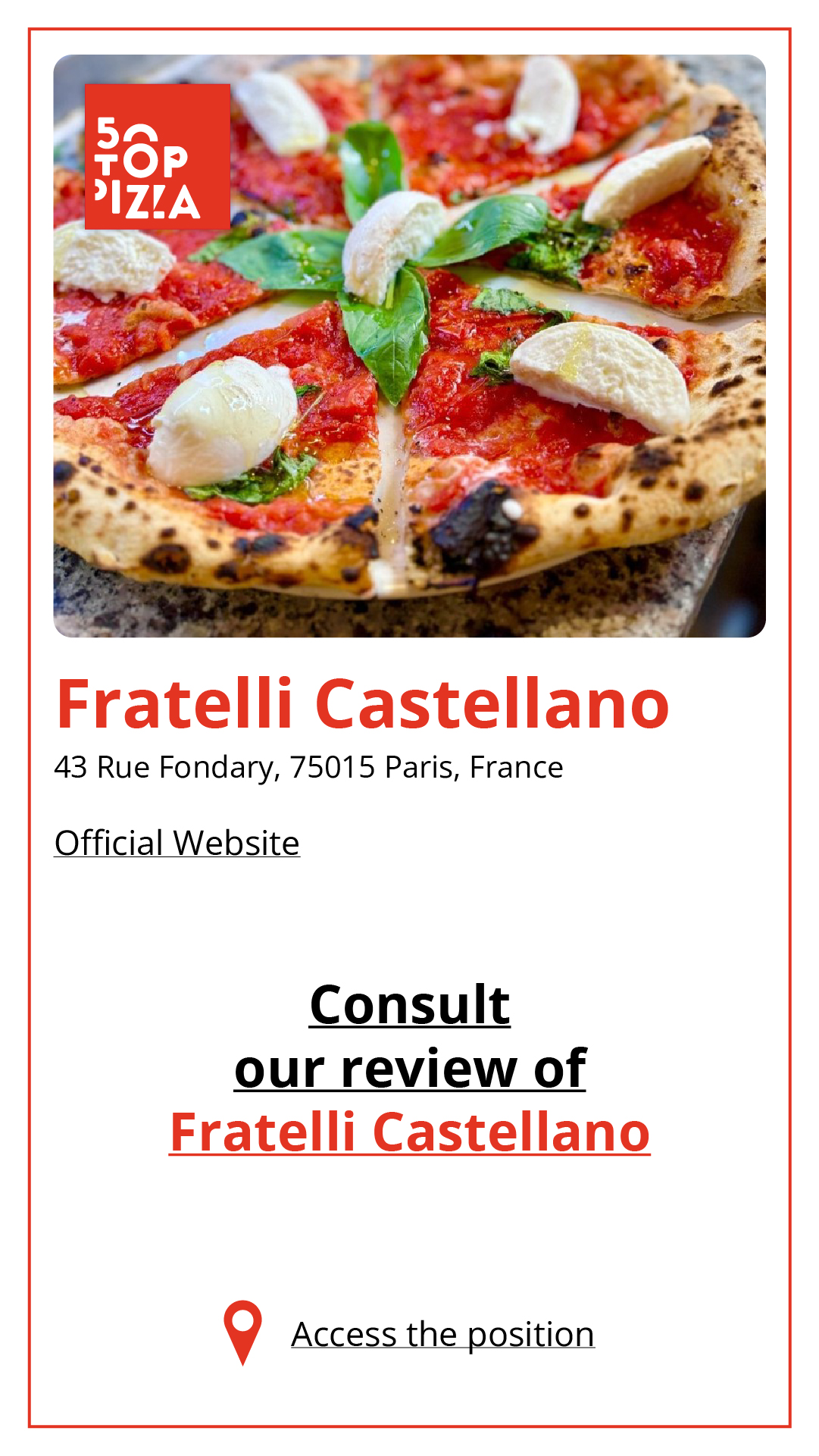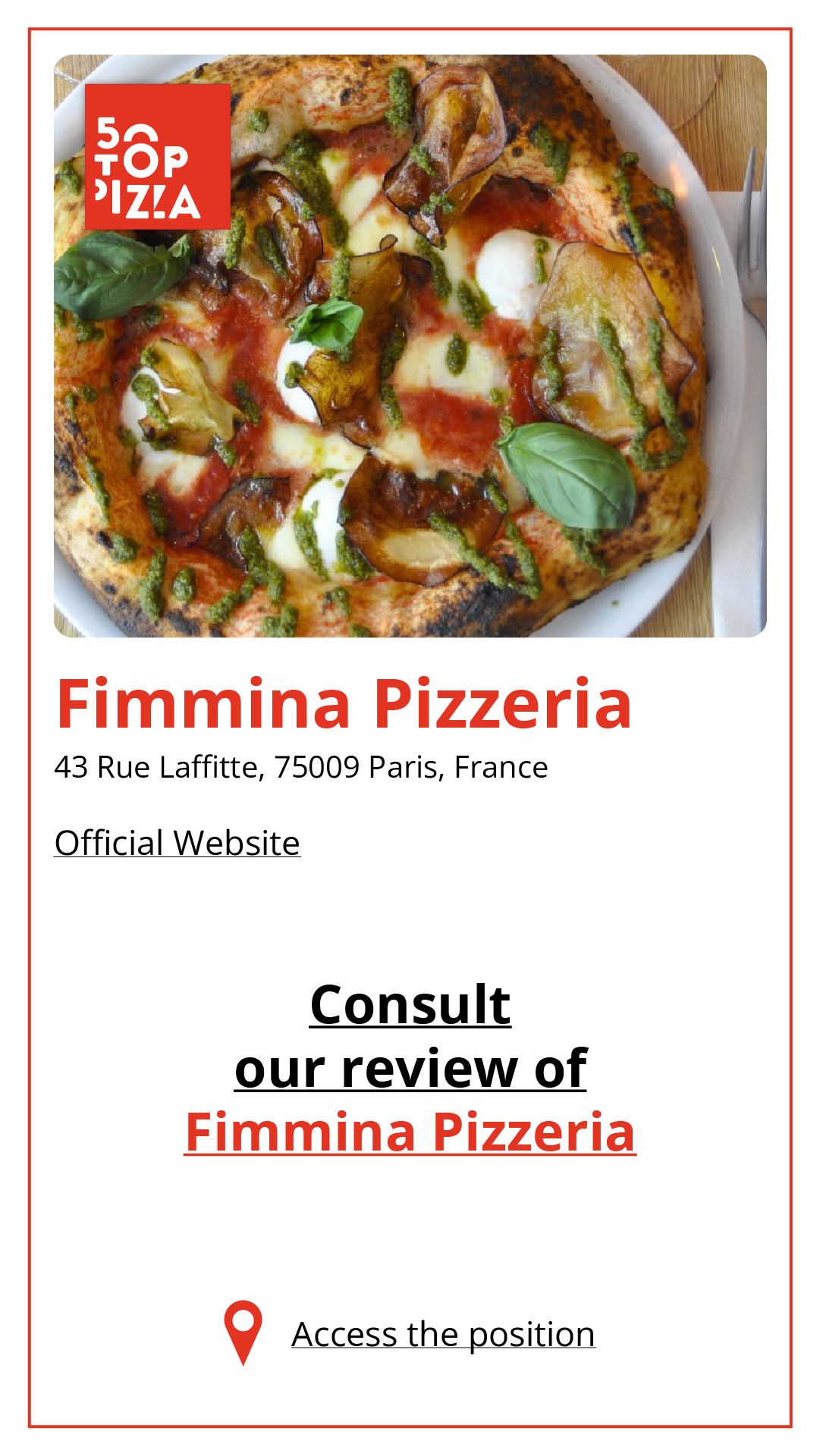 Consulta la Guida alle Migliori Pizzerie di Parigi 2024: https://www.50toppizza.it/the-best-pizzerias-in-paris-2024/