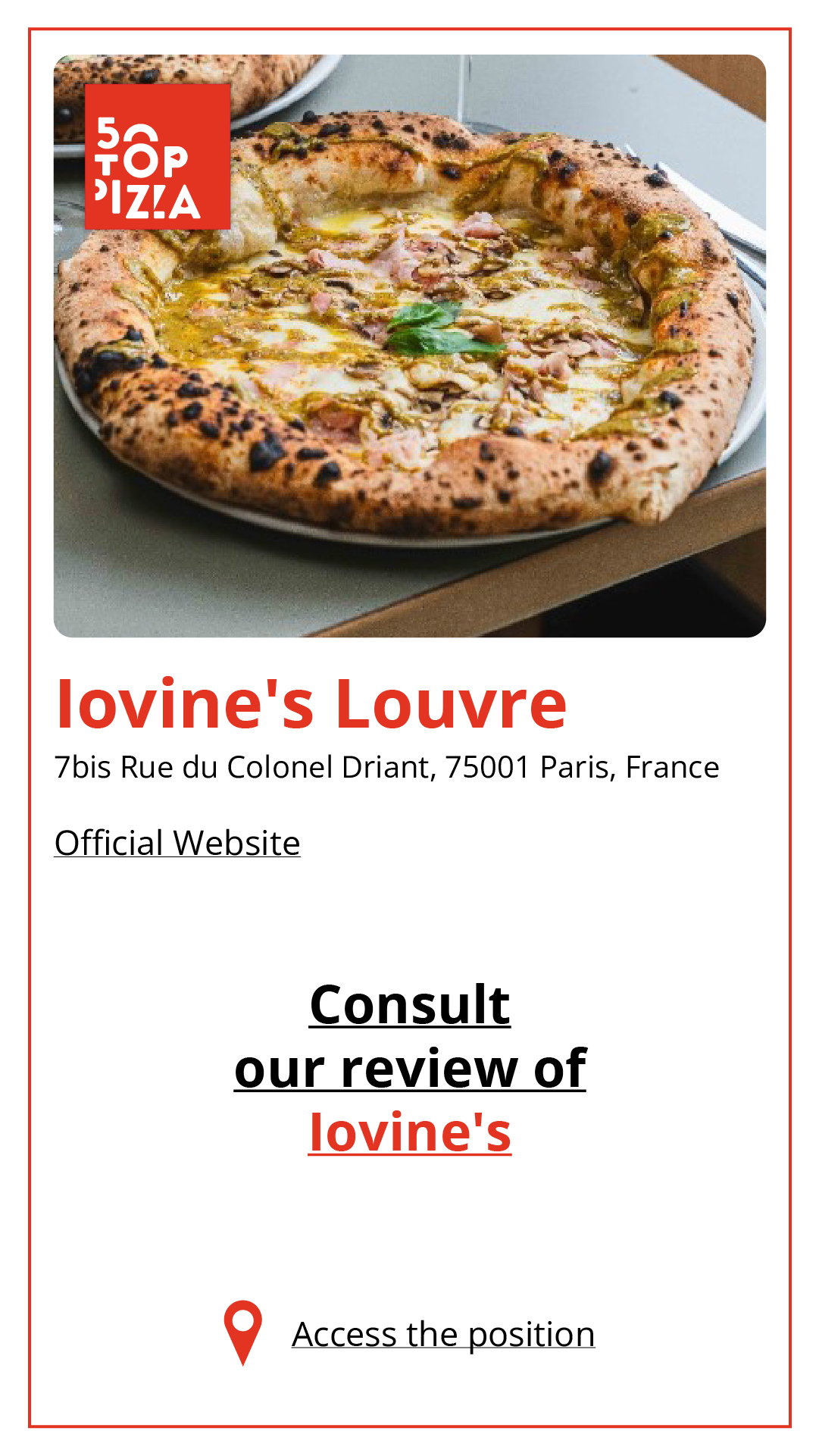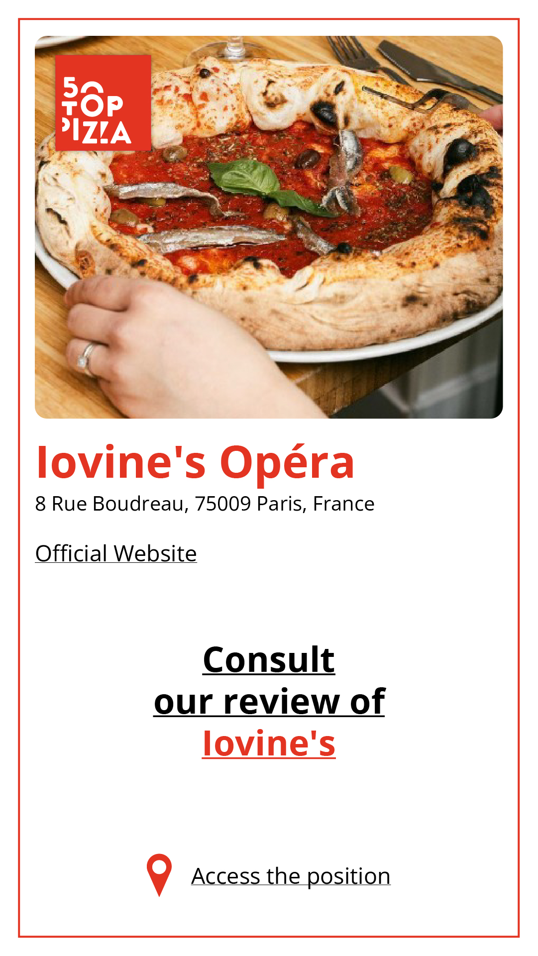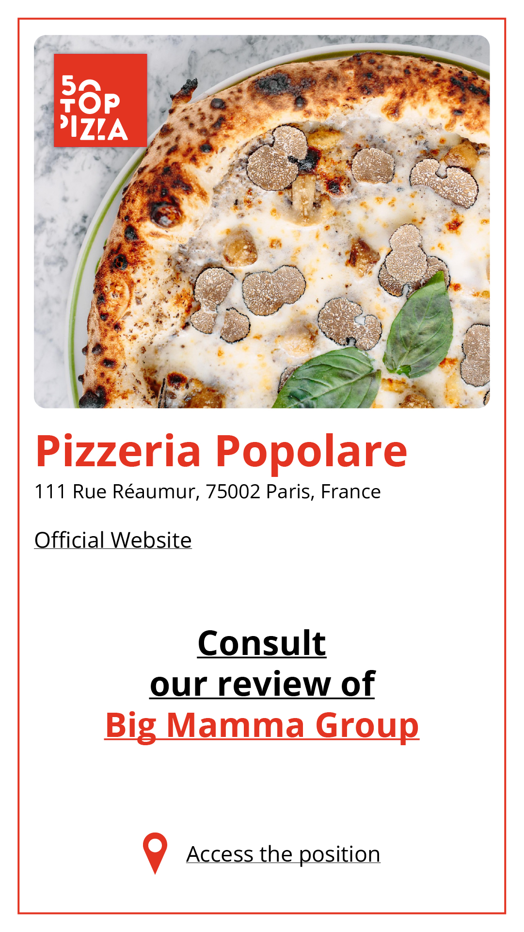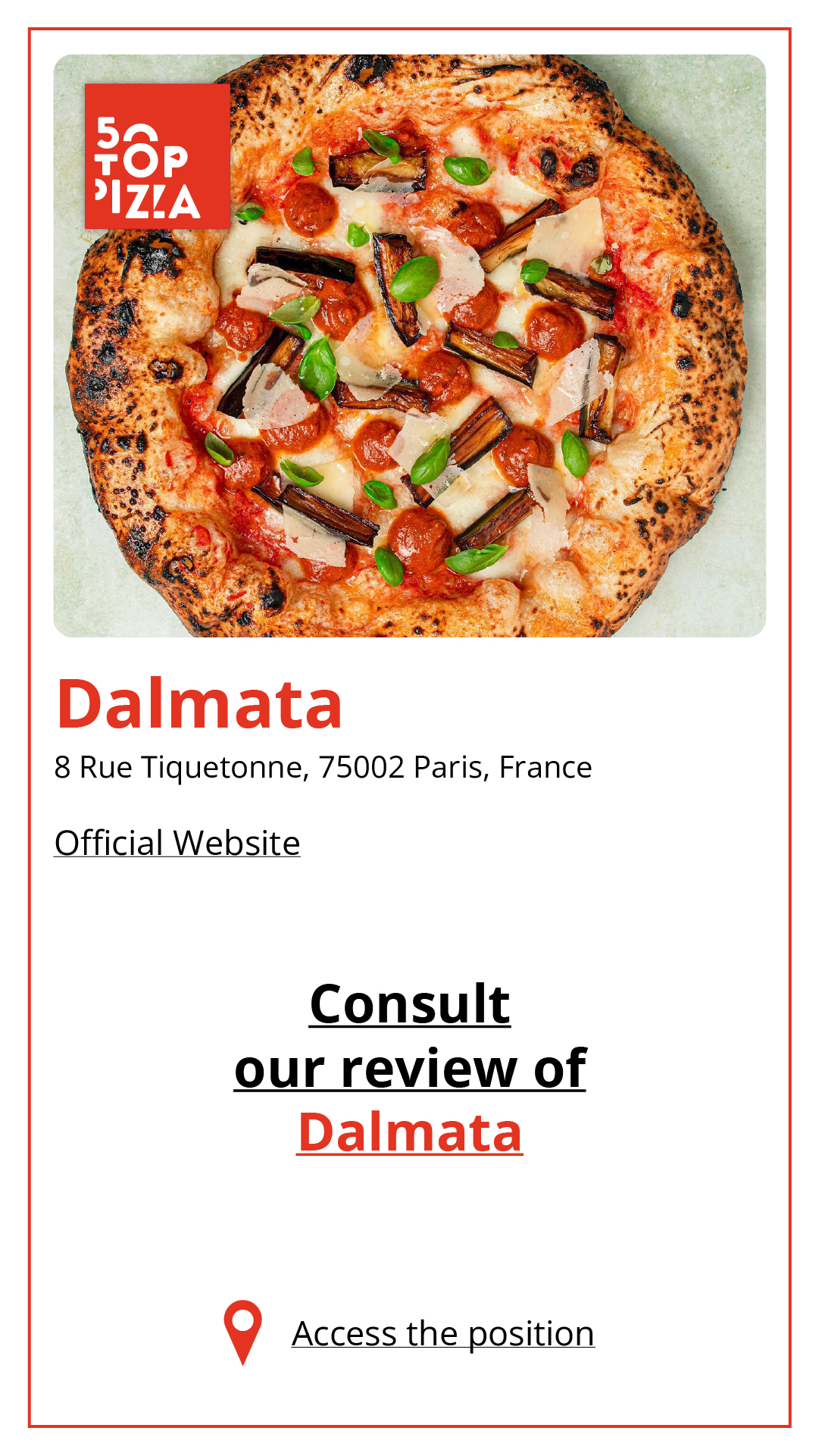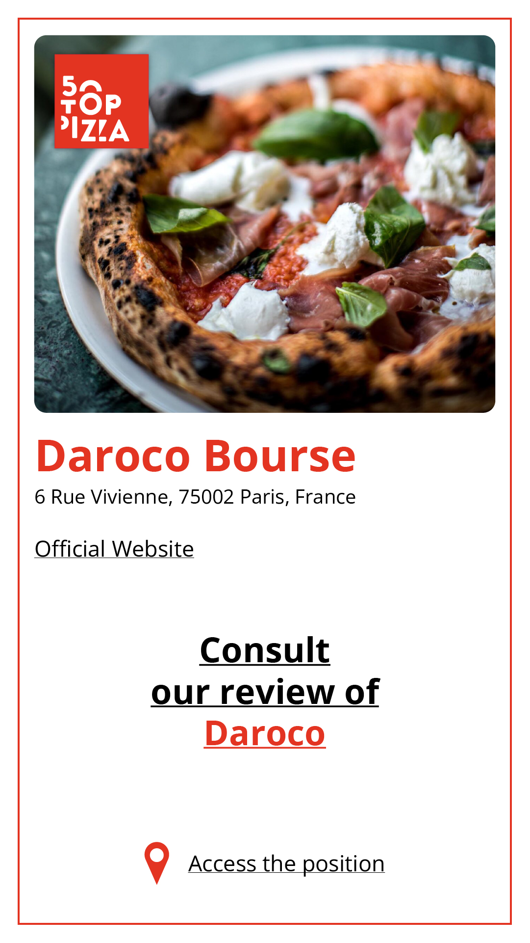 Consulta la Guida alle Migliori Pizzerie di Parigi 2024: https://www.50toppizza.it/the-best-pizzerias-in-paris-2024/