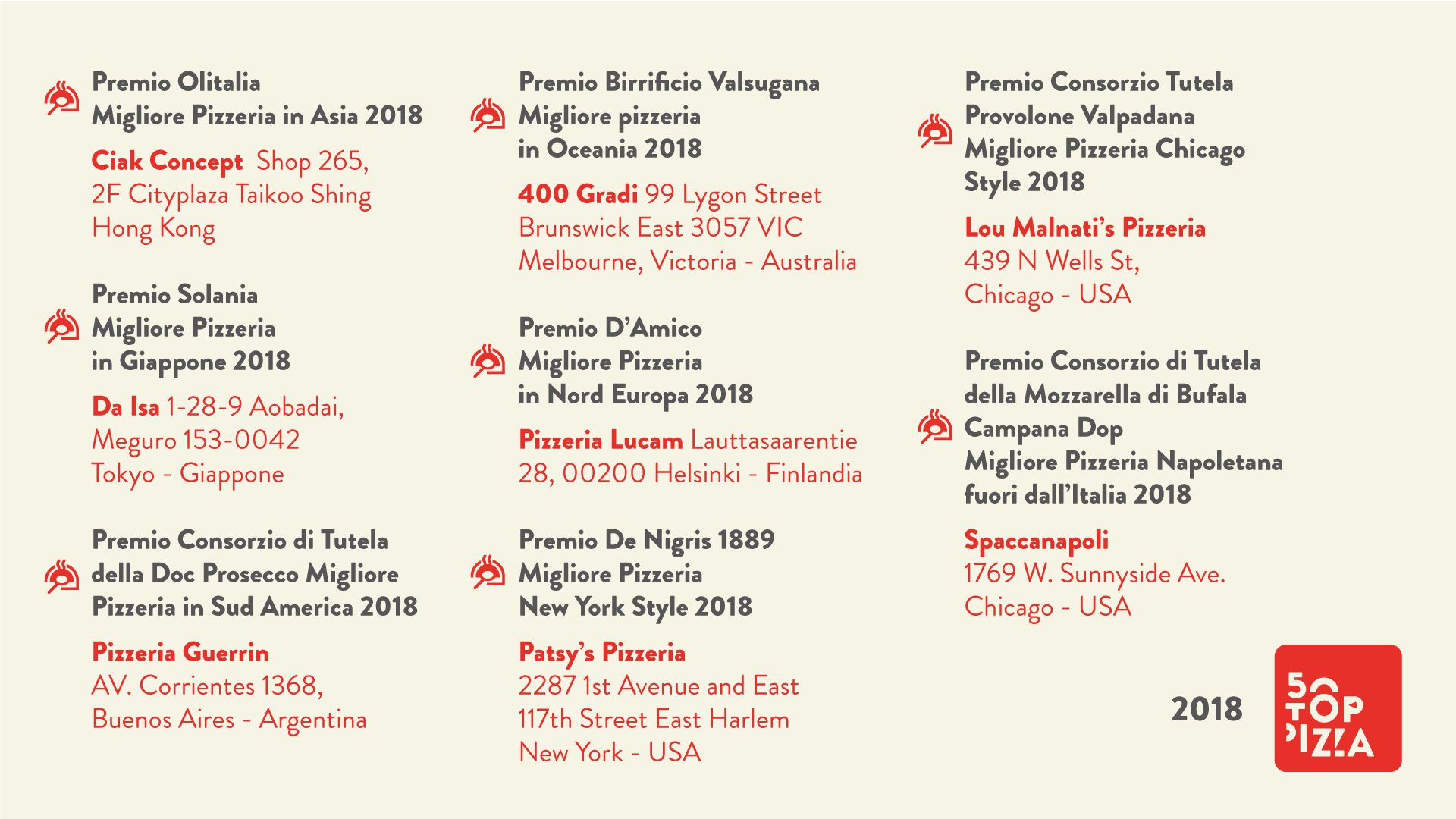 50TopPizza 2018. Franco Pepe fra il bis, Martucci e Ciro Salvo sul podio. Ecco le prime 50 pizzerie della classifica e tutti i premi