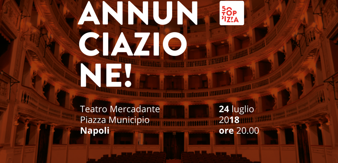 Banner 50 TopPizza Napoli 2018 19/3/2018 Torna a: Signore e signori, va di scena 50TopPizza, finale il 24 luglio al teatro Mercadante di Napoli
