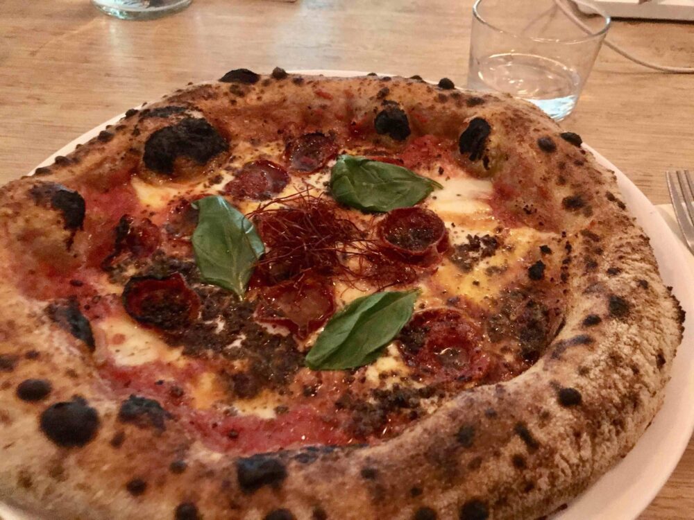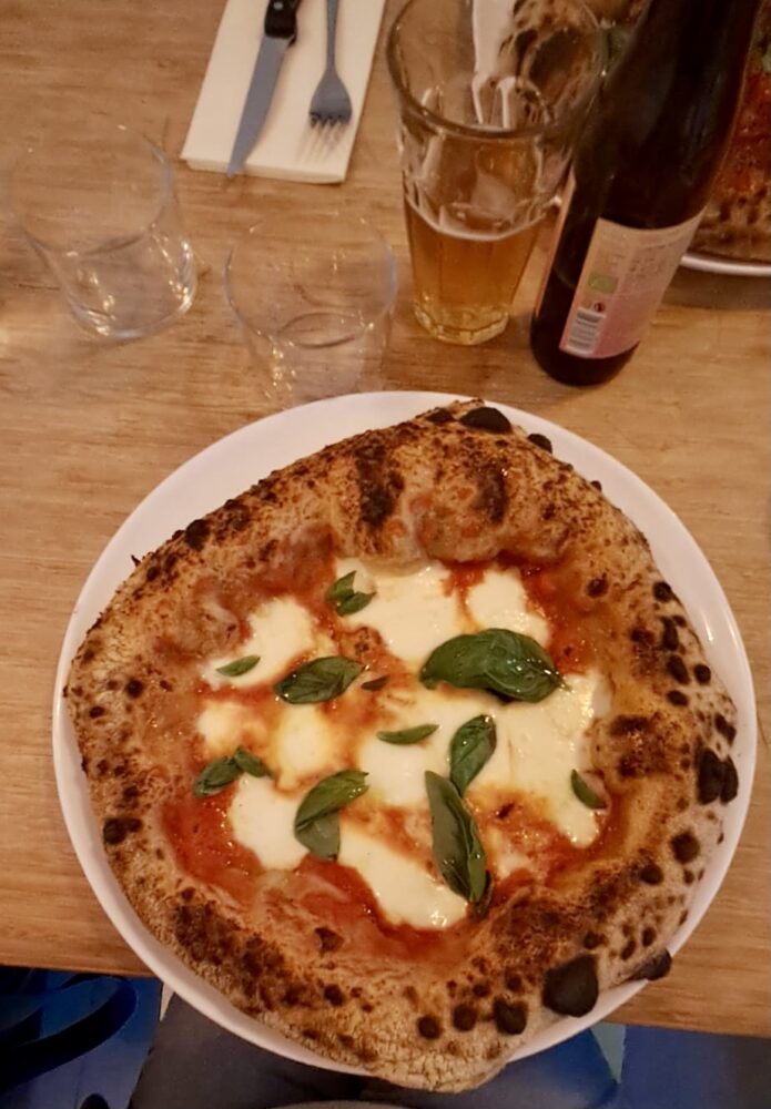 Ordinata spesso quella flambée, la Super Diavola, piccante il giusto e con un filo d’olio infiammato che attira tutti gli sguardi e diverte, con i sapori in perfetto equilibrio. Alcuni dei formaggi utilizzati sono di produzione belga, la mozzarella fior di latte è fatta nel caseificio aperto da ragazzi pugliesi qualche anno fa all’interno della città di Bruxelles che utilizza latte locale senza lattosio, la mozzarella di bufala viene dalle vicine Ardenne, si utilizzano diversi formaggi prodotti dal latte della famosa razza Jersey e la loro Cacio&Pepe è con il Conciato romano, formaggio degli antichi romani oggi Presidio Slow Food.