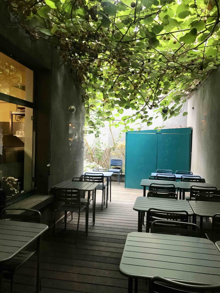 C’è in menù, per fare un ultimo esempio, la Zaatar 2.0, immaginata invece dai proprietari Max et Narimen che abbina zaatar, famosa miscela di erbe e spezie della Palestina, a cacioricotta di capra cilentana e fior di latte di Bruxelles, “una pizza coraggiosa – si legge nel menù – che parla tre lingue e le canta all’unisono”. Biga è quindi una pizzeria che è frutto di una visione e di un programma precisi, d’eccellenza alimentare senza compromessi ma anche di dialogo, apprezzamento e valorizzazione dell’altro. Si è pensato anche ai bambini che qui adorano, racconta Nicola, in particolare la Mimoza con la pannocchia di mais al burro di Isigny e tartufo bianco. Ci sono anche alcune pizze strettamente vegane e proposte al padellino come quella alle tre cotture, con tre diverse consistenze. Se Nicola è lo specialista degli impasti e dell’uso del forno, è Miriam la regina delle altre cotture. Qualche entrées sfiziosa per cominciare, piccola offerta di dolci realizzati in modo artigianale da un amico, gelati. Arredi semplici, ma c’è anche un piccolo delizioso dehors con pergolato di kiwi per quando il tempo è al bello.