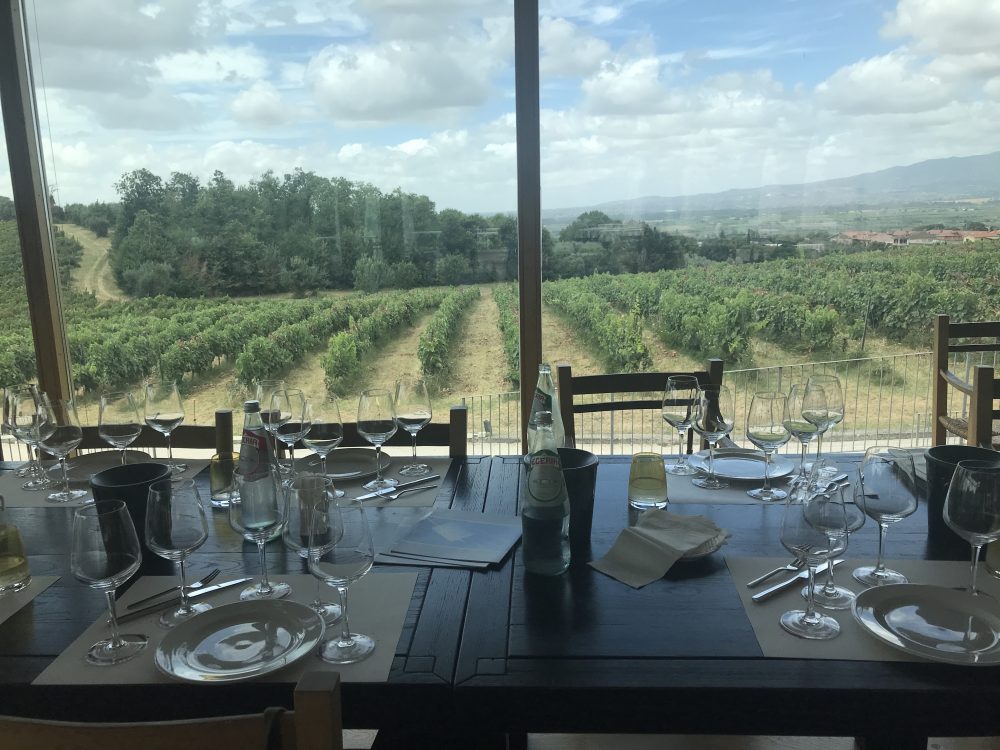 In degustazione infatti il loro Lepino 2018 mostra tannini evidenti e ti fa venire subito voglia di abbinargli carni succulente per attenuarne l’astringenza. La cantina, ha invece il suo punto forte nel Grechetto, sia di Todi che di Orvieto, di cui produce anche un spumante, il Nynphe, ottenuto con metodo ancestrale imbottigliando il mosto solo parzialmente fermentato. Il 2017 è un metodo classico extra brut, “ma a volte viene un brut, decide lui” spiega Laura Giangirolami, una bollicina lieve ma dal gusto intenso, solo 12,5%, perfetta anche per accompagnare piatti di mare. Qui si produce pure Bellone, Cesanese, Malvasia del Lazio e molti internazionali, tra cui un delizioso Rosé da uve Syrah con freschi, accattivanti sentori di pompelmo rosa dominanti ma di cui non sottovalutarne la potenza perché ha 13,5% d’alcol. In vigna hanno cominciato anche a sperimentare pratiche biodinamiche.