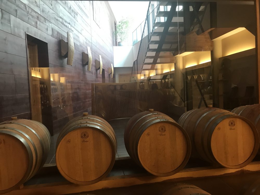 Prima sorpresa: le cantine sociali riconvertite alla qualità soffrono spesso a lungo d’immagine, Cincinnato invece ha già un packaging molto curato e moderno ed anche la struttura d’accoglienza è già un agriturismo raffinato, con eleganti mobili ricavati dalle botti e pareti ricoperte da vecchie arnie.