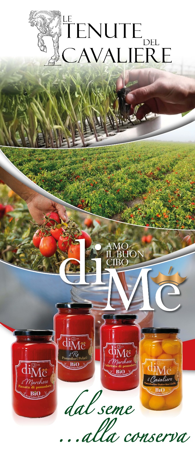 Partendo dal prezioso patrimonio genetico dei semi gelosamente custoditi nel corso degli anni e utilizzati per i vivai, nel 2018 nasce diMe, il marchio di pomodori conservati in vetro che anche nel nome omaggia la Dieta Mediterranea. Il progetto nasce dall’esperienza maturata negli anni nel settore vivaistico: varietà selezionate con cura, coltivate nei terreni della Tenuta e trasformate direttamente in azienda, per preservarne autenticità e qualità.