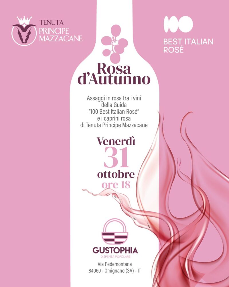 L’appuntamento, in scena venerdì 31 ottobre (ore 18), è stato ideato per coniugare l’eccellenza vinicola italiana, essendo stata Gustophia anche “backstage” delle degustazioni alla cieca 2025 per la guida 100 Best Italian Rosé, all’originalità casearia che contraddistingue la produzione artigianale e biologica cilentana di Tenuta Principe Mazzacane, azienda caprina nata nel 2018 da Annacarla Tredici e Andrea Giuliano nel cuore del Cilento Antico.