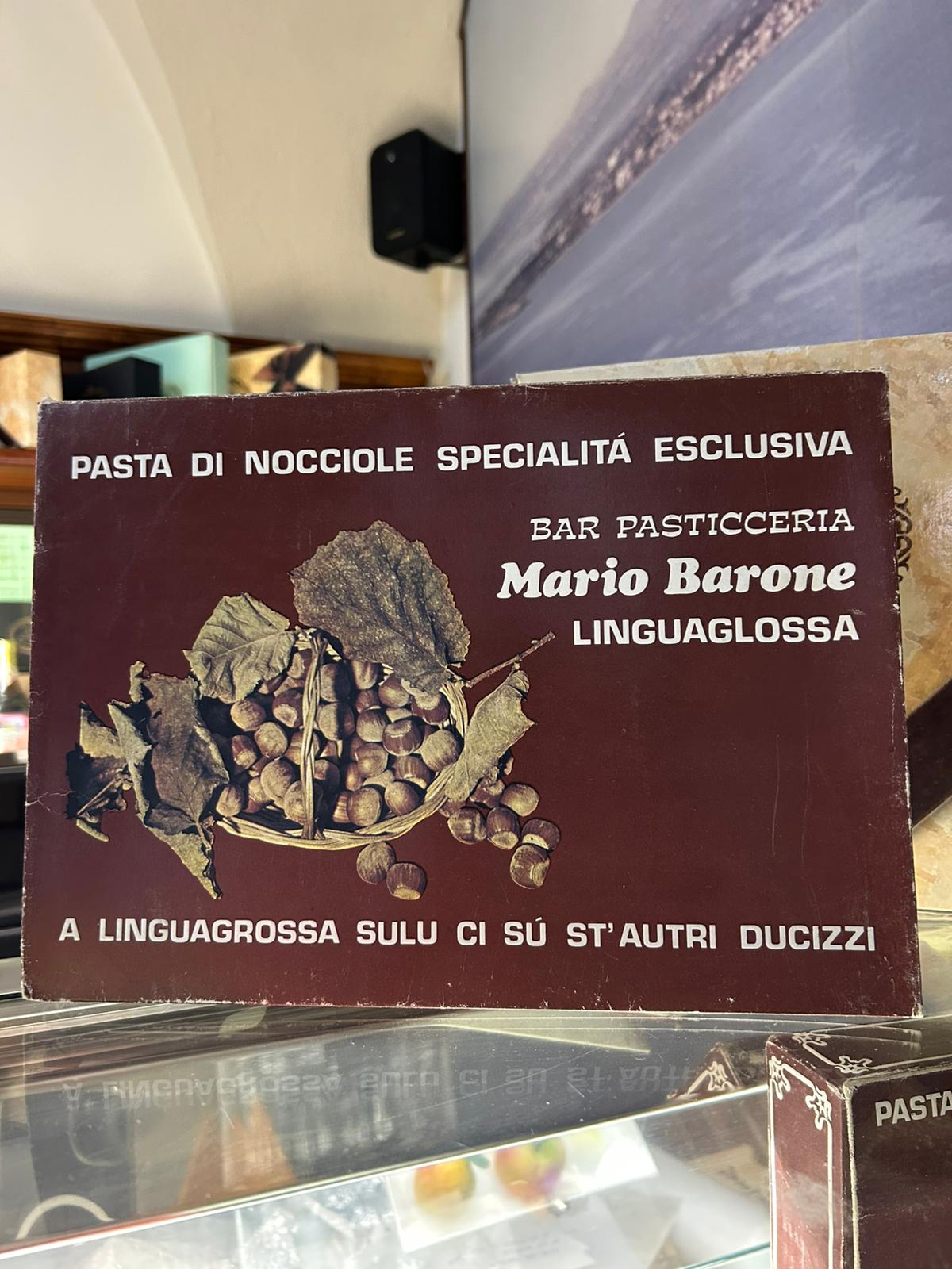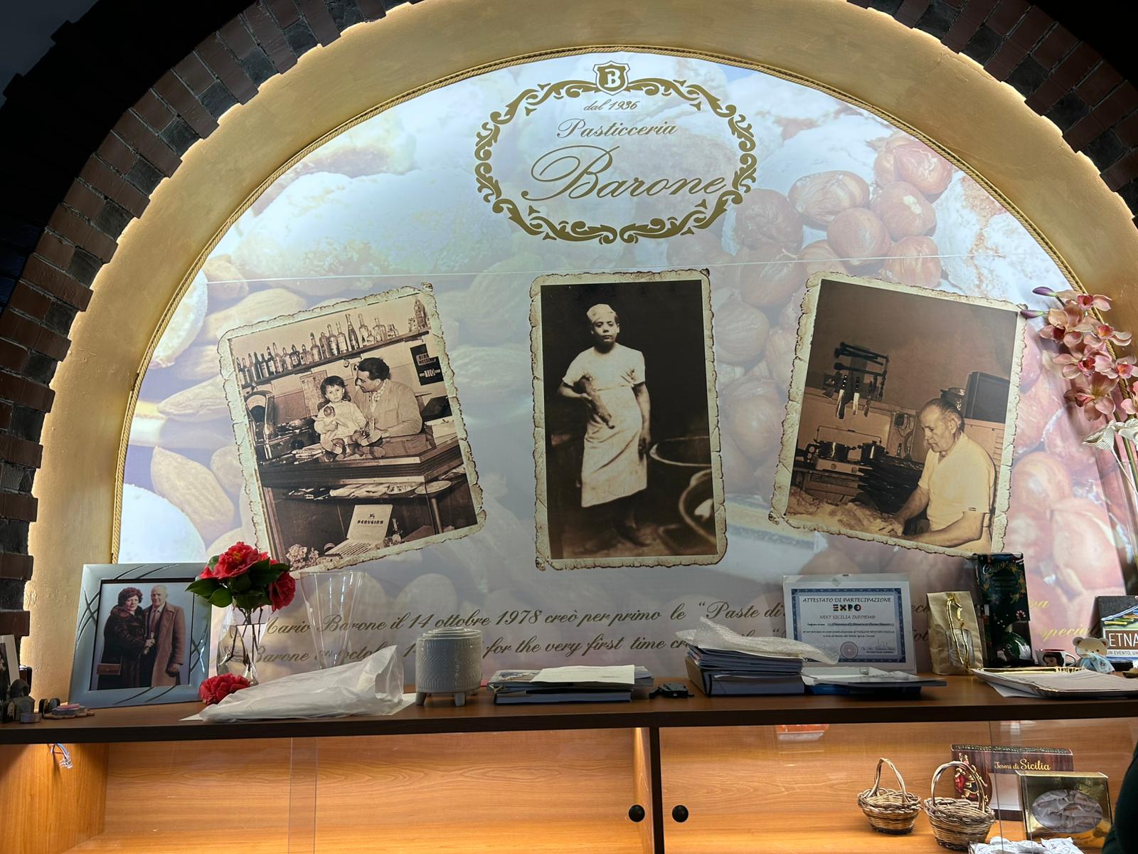 “A Linguaglossa sulo ci sù st’autri ducizzi”. Recita così la locandina pubblicitaria d’antan orgogliosamente in bella mostra sul banco in legno massiccio, lo stesso dal 1939, e magnifiche maioliche siciliane di Barone Pasticcieri a Linglaglossa.