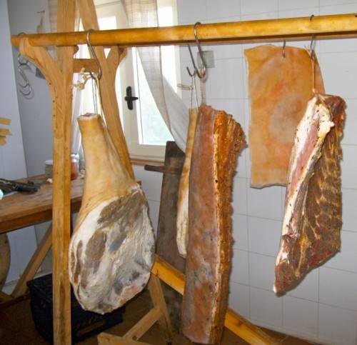 Gli ingredienti del maiale vanno tutti posti sotto sale per 40 giorni.