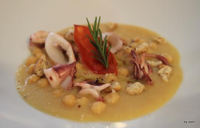 I Ceci di Cicerale con calamaro scottato all’olio di rosmarino e croccante di tarallo napoletano.