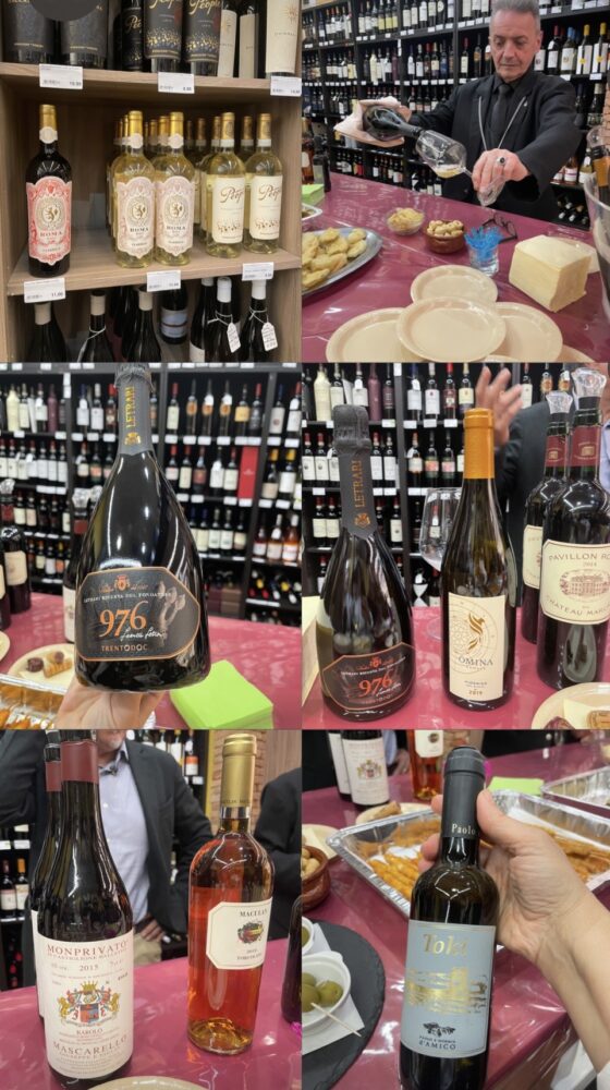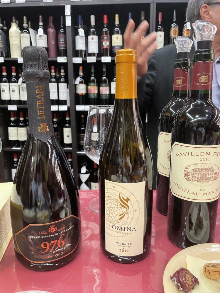 Alcune etichette disponibili in enoteca Letrari Riserva del Fondatore 976 Trento Doc, Omina Romana Viogner Ars Magna 2019, Pavillon Rouge 2014 du Chateau Margaux