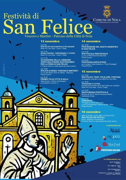 Come ogni anno, la Città di Nola si prepara a vivere le giornate dedicate a San Felice con un ricco calendario di appuntamenti religiosi e civili dal 13 al 16 novembre.