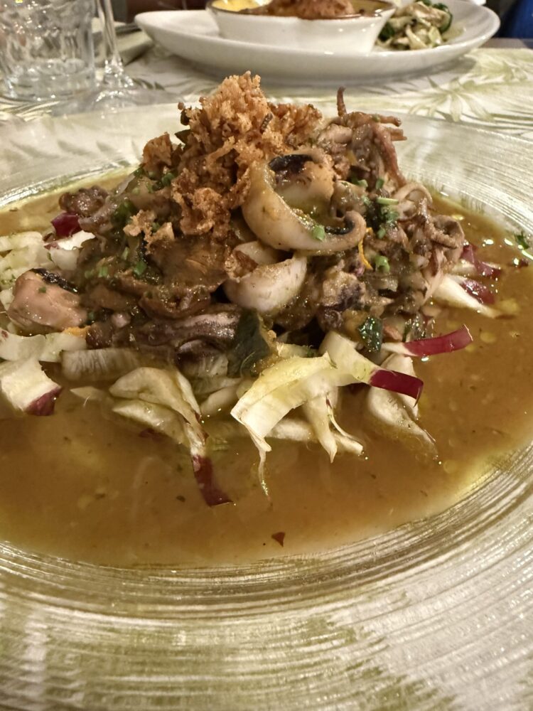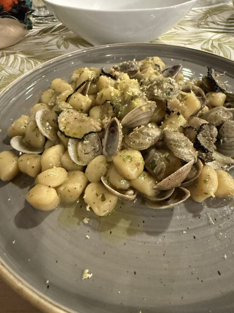 Tra i primi, ho scelto gli gnocchetti con vongole, tartufo e limone, un abbinamento coraggioso ma riuscito, dove i sapori si incontrano in un equilibrio elegante. Forse lo gnocco, per consistenza, divide un po’ i palati: o lo si ama o no, ma resta un piatto che incuriosisce e lascia il segno.