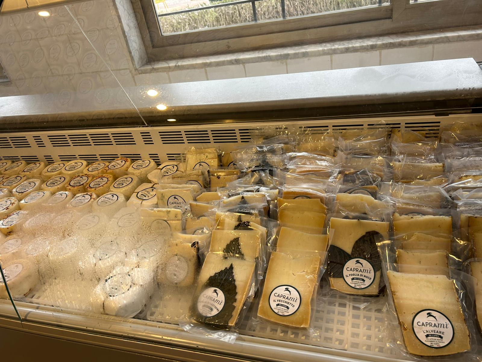 L’offerta è davvero vasta, dal cacioricotta che qui è solo da grattugia, ai freschi come le caciotte, agli spalmabili. Non mancano quelli a crosta fiorita e uno straordinario e delicatissimo erborinato.