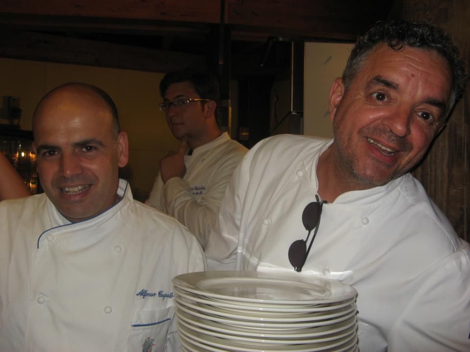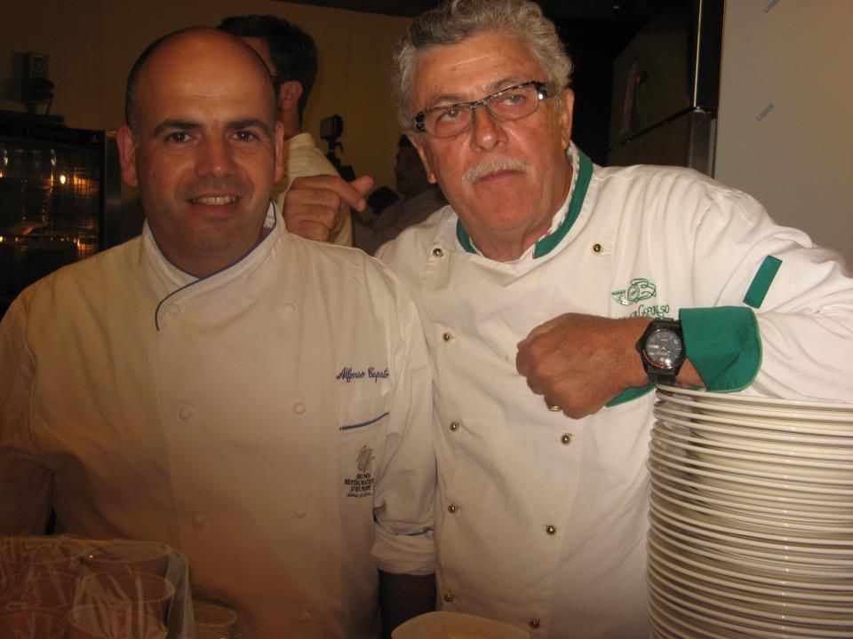 Alfonso Caputo chef della Taverna del Capitano di Marina del Cantone e Alfonso Iaccarino del Don Alfonso di Sant’Agata sui Due Golfi