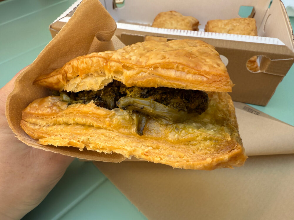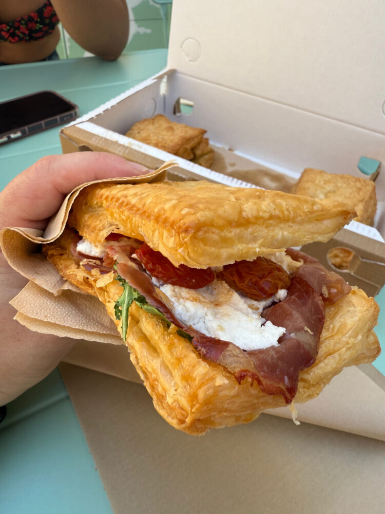 Abbiamo ordinato il tris che rappresenta la Puglia: lo Sporcamuss Pugliese con capocollo, ricotta, rucola e pomodorini sott’olio; lo Sporcamuss “Casa Orecchietta” con cime di rapa e acciughe; e ovviamente non poteva mancare l’ultimo, dal nome “Non Venite in Puglia”, che sembrava proprio un tipico calzone di cipolla. Di fatto prende gli stessi ingredienti, ed è quello che ho preferito di più.