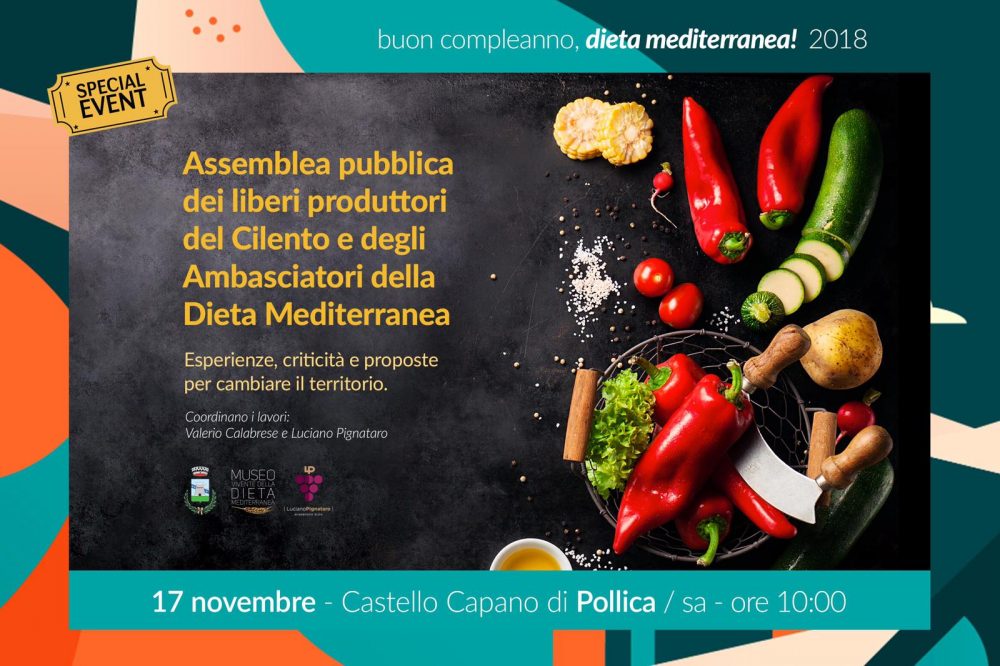 I liberi produttori del Cilento, i ristoratori e gli operatori del settore enogastronomico e turistico, che hanno a cuore la crescita sostenibile del territorio e idee per realizzarla sono invitati sabato 17 novembre alle ore 10.00 al Castello Capano di Pollica. In occasione dell’evento “Buon compleanno Dieta mediterranea”, che celebra l’ottavo anniversario del riconoscimento Unesco, si terrà la prima assemblea pubblica tra produttori, ristoratori e operatori turistici di eccellenza del Cilento. L’obiettivo è quello di creare una rete e uno strumento di confronto, per fissare le priorità e chiedere alle istituzioni di fare il proprio dovere per assicurare un futuro agricolo e turistico ecocompatibile ad uno dei territori più incontaminati d‘Europa. Per la prima volta gli attori principali dell’economia del Cilento avranno l’opportunità di fare fronte comune per superare le criticità del territorio e avanzare proposte per uno sviluppo che concili benessere economico e rispetto per l’ambiente.