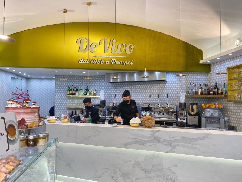 Dal 1955 nella centralissima via Roma, a pochi passi dall’imponente santuario e ad una manciata di metri dall’area archeologica, la Pasticceria De Vivo rappresenta una certezza per la città di Pompei. Parliamo di dolci, dalle grandi paste delle tradizione immancabili nei cartocci della domenica, alle più contemporanee monoporzioni, passando per un ricco assortimento di mignon. Nel cuore della gioranta è sempre un bel via vai di gente e il banco è ben fornito con sfogliatelle (ricce e frolle) rimpiazzate calde con regolarità, è chiaro che tra tante leccornie sono probabilmente loro le più ambite e richieste.