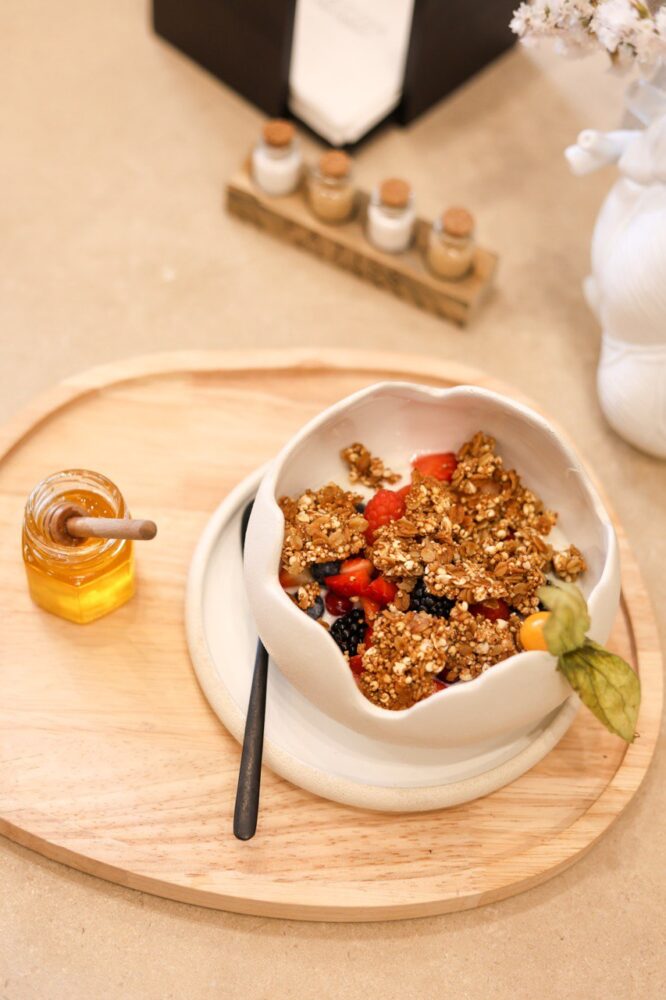 La proposta, accontenta sia gli amanti della colazione fit – attenzione speciale per la granola- che quelli della piccola pasticceria, passando per la viennoiserie.