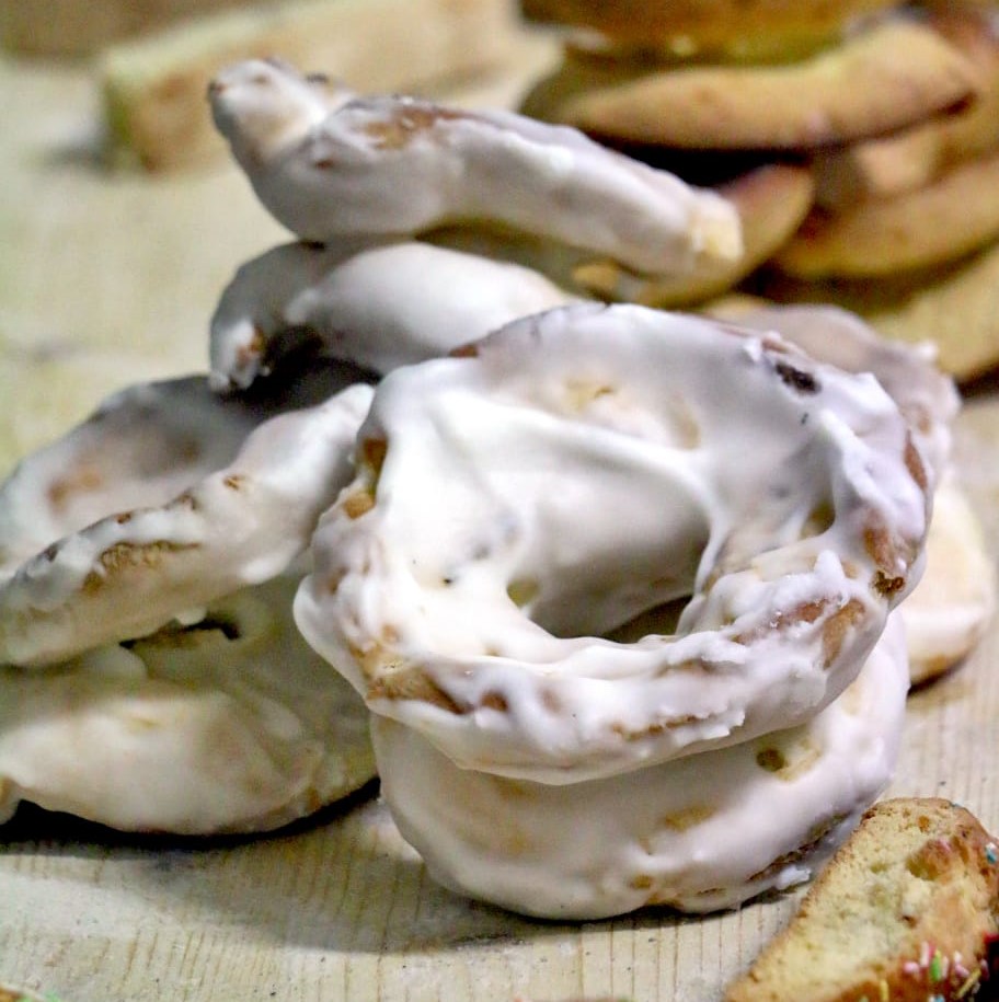 La peculiarità di quelli del Vallo di Diano risiede nella semplicità degli ingredienti: uova, farina, poco zucchero e olio extravergine d’oliva. Esiste anche una versione ancora più essenziale, priva di glassa, che prevede una maggior quantità di uova. Un tempo questi dolci venivano utilizzati per adornare i rami d’ulivo prima della benedizione durante la messa solenne delle Palme, una tradizione che alcune famiglie conservano ancora oggi.