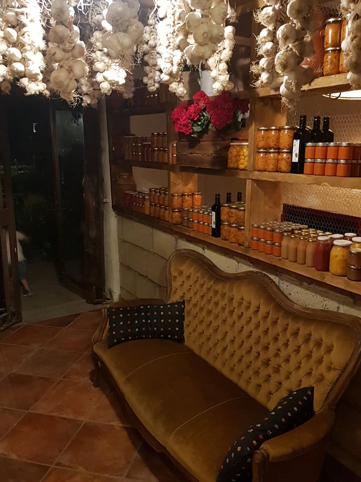 Materiale di risulta per gli arredi, centrini della nonna come tovagliette, bicchieri come nelle credenze di famiglia, un ampio giardino, due salette ed un’antica cantina dedicata ai momenti di degustazione, questi sono i locali che ospita l’intero complesso.