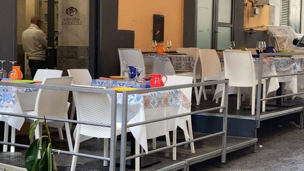 ‘A Taverna d’è Zoccole, osteria di mare una volta locanda del malaffare, appena inaugurata, (per ora aperta solo a pranzo ma nelle intenzioni c’è quella di servire anche la cena) nasce dall’idea di ridare vita a quello che era un luogo di malaffare situato nel cuore dei Quartieri Spagnoli e di trasformarlo in un’oasi di piacere…culinario.