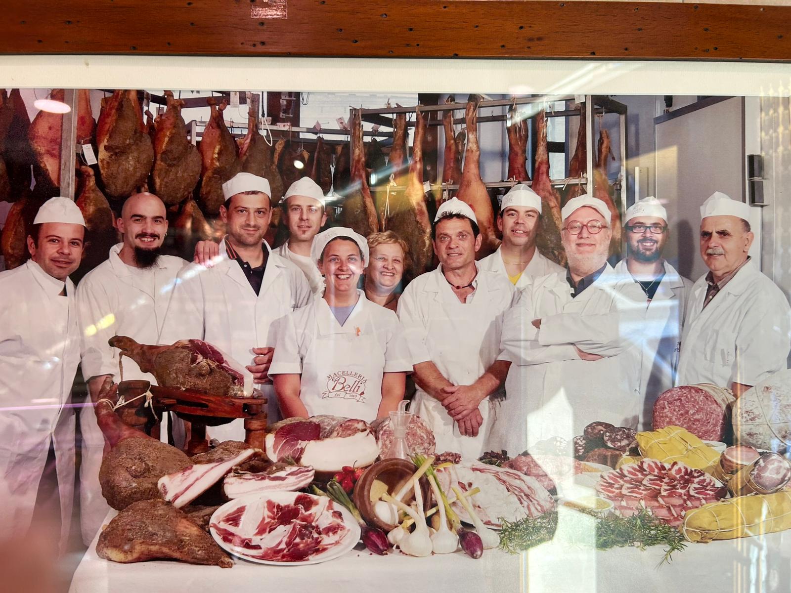 Il Belli, come dicono da quelle parti, non proviene da una famiglia di macellai, ma di contadini. Una famiglia allargata che coltivava un discreto appezzamento di terra, il podere, nelle campagne senesi a pochi chilometri dall’attuale sede. Ma a lui la vita del contadino stava stretta, voleva fare altro. Così, a soli vent’anni, decise di andare a fare “la stagione” presso una macelleria di Chianciano. Quei pochi mesi furono decisivi per il suo futuro: voleva fare il macellaio mantenendo fede a ciò che gli era stato insegnato, ossia carni autoctone di grande qualità che, tradotto, vuol dire vitello di razza Chianina e maiale di Cinta Senese, trattate, sia nel taglio che nella frollatura, con le tecniche apprese dai macellai di lungo corso di Chianciano.