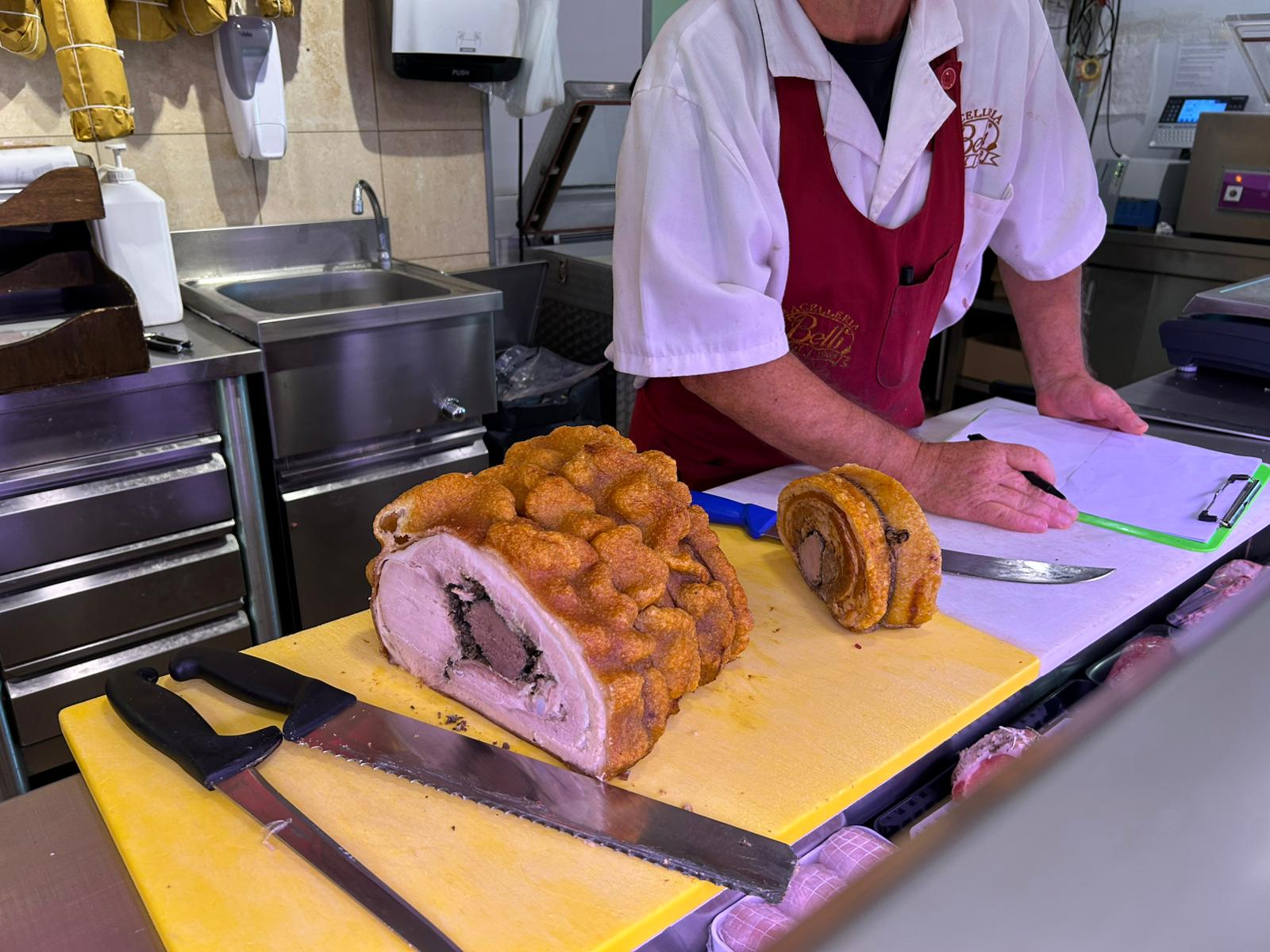 La loro specialità è il lonzino, filetto di maiale stagionato, a questo si aggiungono prosciutti da cinta senese Dop così come capocolli, lardo, salsiccia e salami. Buonissima la coppa di testa che chiamano soppressata e la porchetta realizzata a regola d’arte.