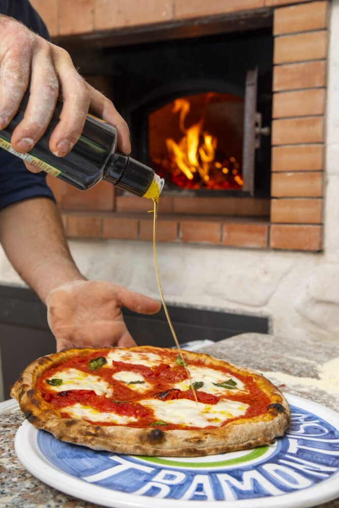 Qui nascono eccellenze tipiche come il Fior di Latte e il pomodoro Fiascone, ingredienti che saranno poi alla base della nascita della pizza. Sì, perché la pizza ha Tramonti nella propria carta di identità. Nata come una schiacciata prodotta con i grani antichi coltivati in zona (farro, orzo, miglio e segale), veniva condita dalla gente del luogo con gli ingredienti a loro disposizione: pomodoro, Fior di Latte e olio extravergine di oliva.