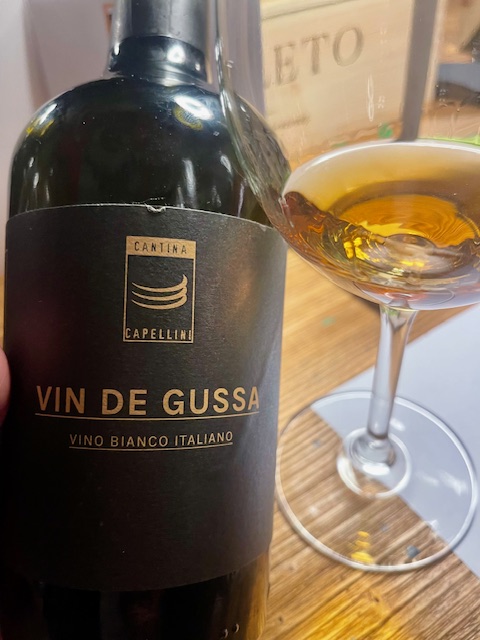 Arrivato al termine dell’evento il Vin de Gussa, un fuori programma che ha ulteriormente deliziato i palati per le sua caratteristiche di unicità. Adatto a formaggi anche stagionati ha peculiarità uniche il cui gusto è dettato da un insieme di dolcezza freschezza e sapidità che non lascia indifferenti. Il vin de Goussa altrimenti ripasso della cantina, nasce da una base di Bosco Albarola e Vermentino. La storia ci racconta che il «torchiato» del vino bianco che veniva pressato, in maniera robusta sino a spillare l’ultima goccia. Un vino nato dalla tradizione contadina atto a spremere anche l’ultima goccia dai grappoli, di cui risultava un gusto rustico e difficile, quindi ripassato sulle bucce sulle bucce del dolcissimo Sciacchetrà ancora in fermentazione. Di quest’ultimo recupera i profumi dolci di frutta secca, rosmarino, miele, agrume disidratato con cedro candito, con una sferzante venatura marina iodata. I sapori sono bilanciati, ammorbiditi da un residuo di dolcezza e morbidezza tipiche del vino dolce ma dinamizzato da una generosa dose di acidità e sale a cui si aggiunge un finale con una lieve sensazione tannica, intenso e persistente è uno di quei vini in grado di stupire.