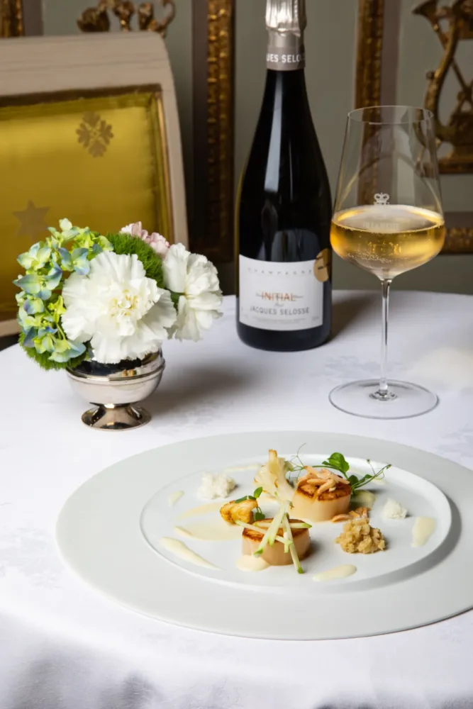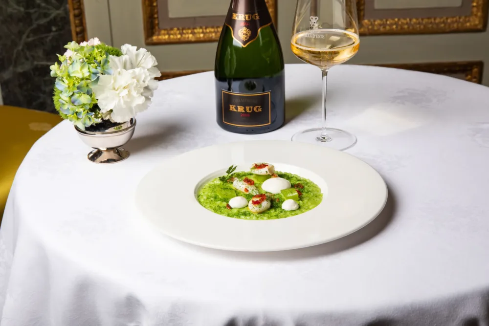 Una selezione di grandi bottiglie e vecchie annate, studiata dal Wine Manager Alex Bartoli, sarà valorizzata ed esaltata dalle creazioni culinarie del Group Executive Chef Michele Zambanini, che propone una cucina ricercata e raffinata. Dagli champagne Jacques Selosse, Dom Pérignon e Krug, ai rinomati vini piemontesi Gaja, alle migliori etichette di Sassicaia, fino al gotha del vino mondiale Domaine de la Romanée-Conti, saranno in abbinamento a menù costruiti ad hoc dallo Chef, un omaggio alla grande cucina italiana.