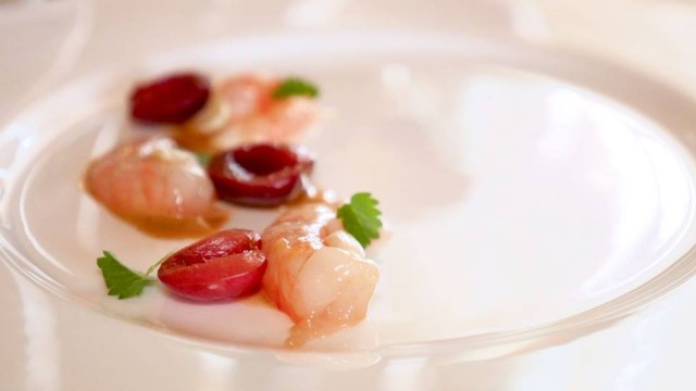 Gambero, mandorla, ciliegia e pepe rosa (Luca Abruzzino)